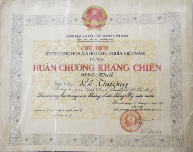 Vì có công lao trong cuộc Kháng chiến chống Mỹ cứu nước, riêng Thượng tọa Thường Chiếu (Lê Thượng), tháng 2 năm 1976 đã được đón nhận Huân chương kháng chiến Hạng nhất của Chủ tịch nước Lê Dức Anh.