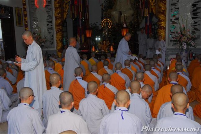 14 giờ, ngày 20-10-2013 (16-9 Quý Tỵ), các giới tử tiến hành thi tụng luật, giới tử Tăng tập trung tại chánh điện chùa Long Sơn, Tăng khất sĩ tại giảng đường trường TCPH, chư Ni tập trung tại chánh điện Ni viện Diệu Quang, chư Ni khất sĩ tại giảng đường Ni viện.