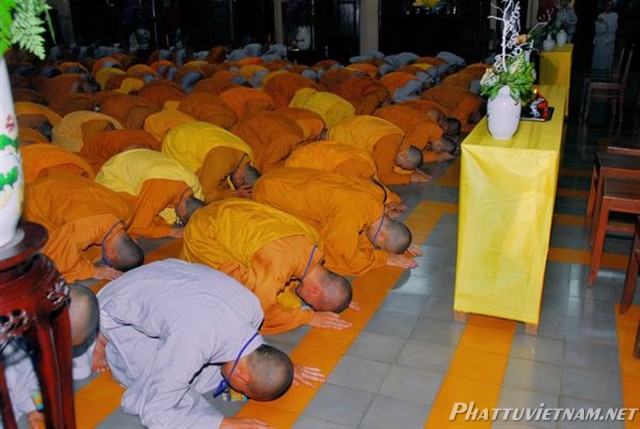 Đức Phật lúc sắp nhập niết bàn, trong Kinh Di Giáo đã dạy: “Này các tỳ kheo, sau khi ta diệt độ, các thầy phải trân trọng tôn kính, giữ gìn tịnh giới, như người mù tối mà được mắt sáng, nghèo nàn mà được vàng ngọc. Phải biết tịnh giới là đức thầy cao cả của các vị. Nếu ta ở đời thì cũng không khác gì tịnh giới ấy”. Giới luật là nền tảng đức hạnh căn bản của người xuất gia. Do vậy, việc học giới và trì giới là điều quan trọng của các giới tử trước khi muốn đăng đàn cầu thọ giới pháp. Nhất tâm đảnh lễ Kiết tập Luật tạng Ưu Ba Ly tôn giả chứng minh. Trong tiếng âm vang trầm hùng trang nghiêm thanh tịnh, các giới tử đã chí thành tụng lại bốn quyển luật trường hàng Tỳ- ny, Sa di, Sadi Ni, oai nghi cảnh sách… ôn lại những điều chư Phật Tổ đã dạy để làm hành trang cho mình chuẩn bị đăng đàn thọ giới và trên bước đường tu học sắp đến. Buổi khảo thí luật đã diễn ra trang nghiêm viên mãn dưới sự giám sát của Ban giám thị.