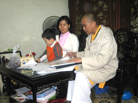 Anh Hoàng Văn Sáo đang nghe nhà ngoại cảm Phan Bích Hằng