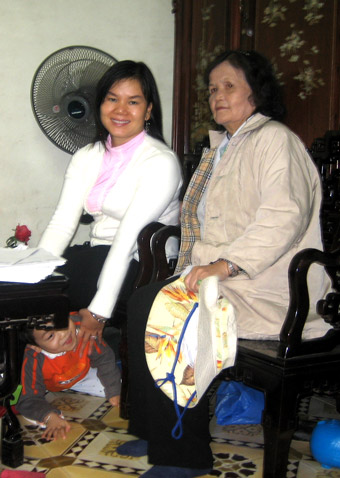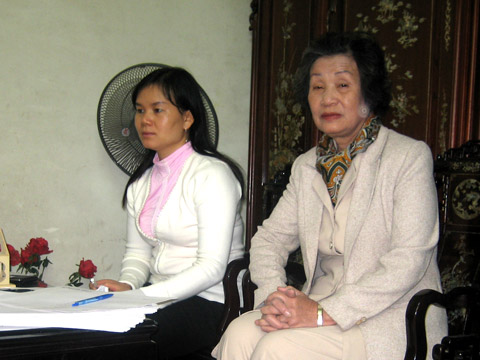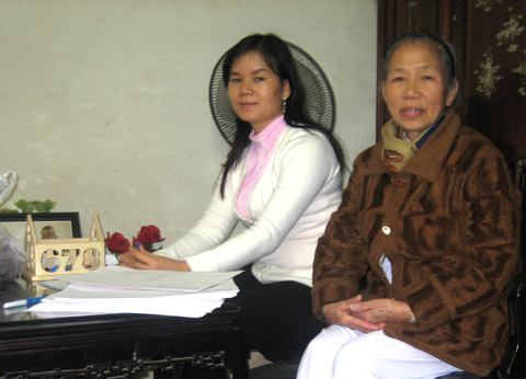 Chị Lê Thị Thúy Hằng chụp hình với nhà ngoại cảm Phan Thị Bích Hằng