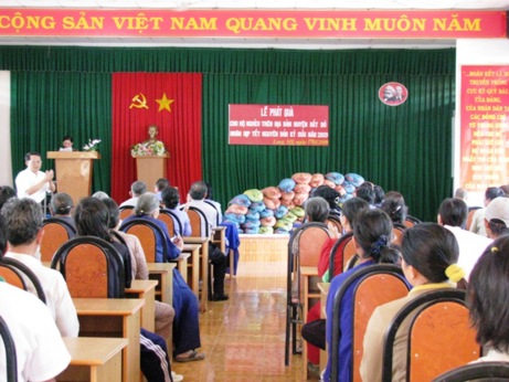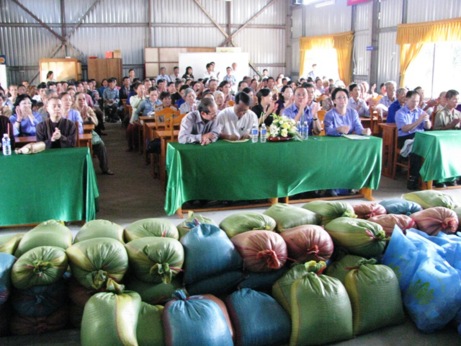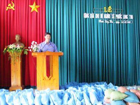 Bà con xã Phước Long Thọ đã có mặt tự bao giờ trong hội trường. Ban Tổ chức tiến hành lễ phát quà cho 135 bà con thuộc diện nghèo của xã. Buổi lễ diễn ra trong không khí thấm đượm nghĩa tình có sự tham dự của Ông Mai Văn Thuận – Phó chủ tịch UBMTTQ huyện Đất Đỏ; Ông hà Minh Đăng – đại diện cho UBMTTQ tỉnh BRVT và các Ông đại diện cho chính quyền xã.