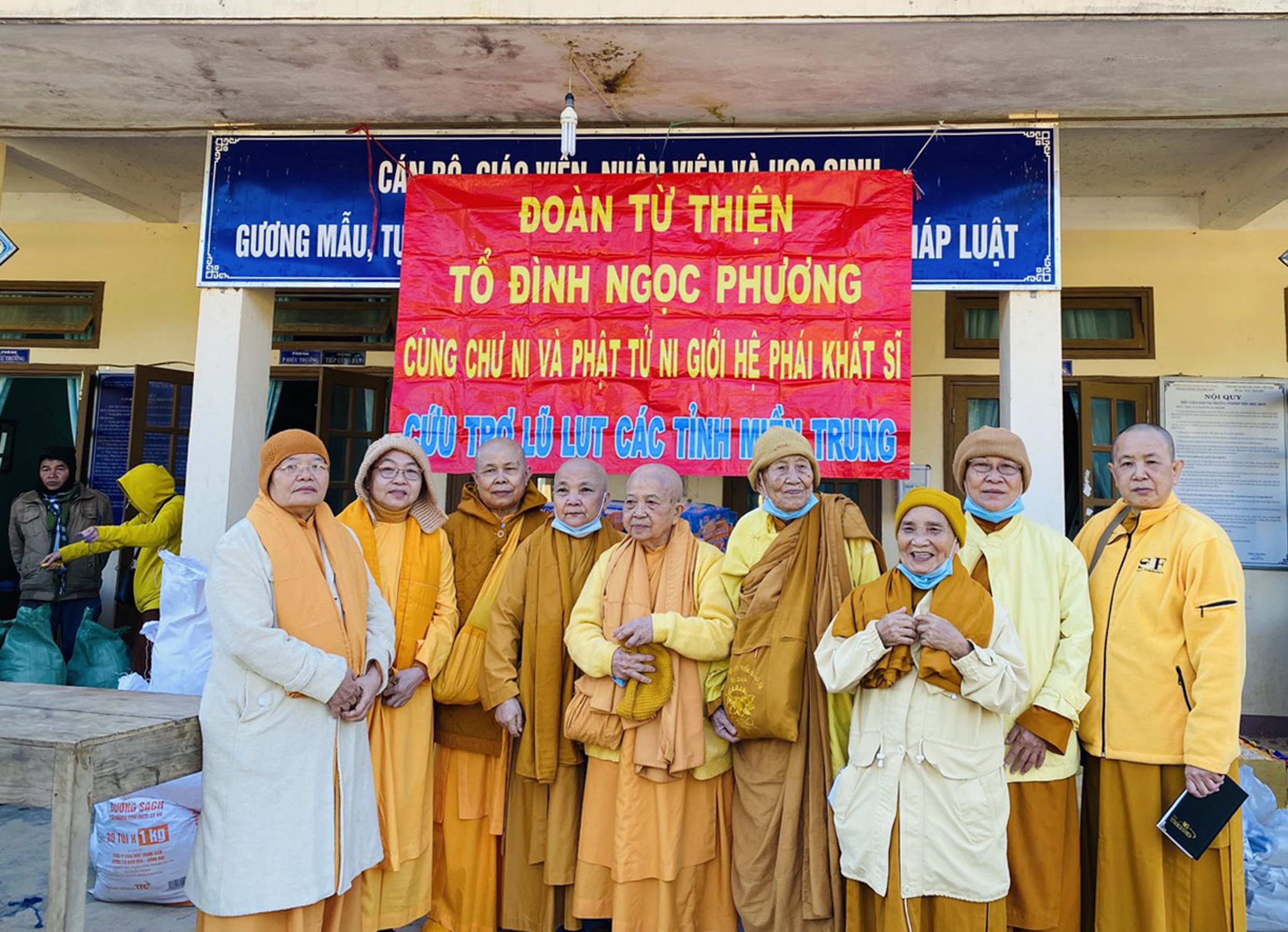 Đoàn do Ni trưởng Chiêu Liên – Giáo phẩm Thường trực NGHPKS, trụ trì Tịnh xá Ngọc Khánh, thị xã Long Khánh tỉnh Đồng Nai làm trưởng đoàn; Cùng đi với đoàn có: Ni trưởng Hiếu Liên – Giáo phẩm thường trực NGHPKS, trụ trì Tịnh xá Ngọc Long, Đồng Nai; Ni trưởng Chúng Liên – Trưởng Ban Từ Thiện Giáo hội Phật giáo tỉnh Quảng Nam, chư tôn đức Ni Ban Từ thiện NGHPKS, và quý Mạnh thường quân, Phật tử tháp tùng đoàn.