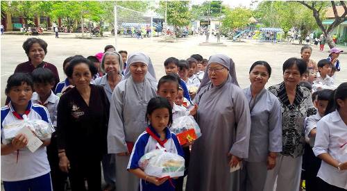 Trước đó, ngày 7/9/2017, Ni Trưởng cũng đã về trường tiểu học Rạch Đào, Mỹ Lệ, Cần Đước, Long An phát 50 phần quà, mỗi phần quà trị giá cũng 200.000 đồng.
