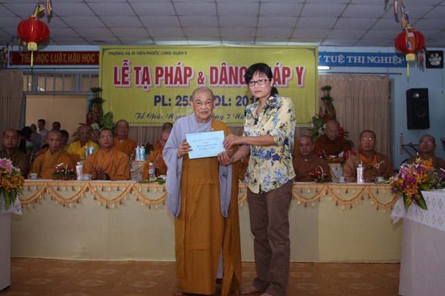 Đặc biệt, tại buổi lễ Tạ Pháp, thay mặt Ban tổ chức, NT. Thích Nữ Nguyên Thuận đã trao tặng 20 suất học bổng cho đại điện UBMTTQ quận 9 và phường Phước Long A. Buổi lễ kết thúc với lời cảm tạ từ NT.Thích nữ Như Cảnh, Phó thiền chủ trường hạ.