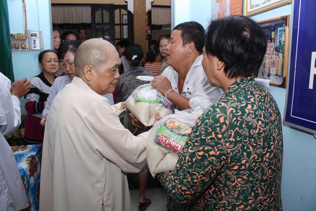 Tại buổi lễ, Ni trưởng viện chủ cũng đã trao 200 suất quà đến bà con nghèo tại phường Phước Long A và phường Phước Long B, quận 9, TP. Hồ Chí Minh, mỗi suất quà trị giá hơn 200.000 đồng.