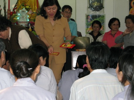 Trở lại Niệm Phật Đường Phong Qui Hoà lần này trong những ngày giáp tết, Ban Từ Thiện đã dành 80 bao lì xì (trung bình mỗi hộ từ 500.000 đồng đến 700.000 đồng) mừng tuổi, mừng năm mới, mừng sự tinh tấn vuợt khó vươn lên của bà con Phật tử nơi đây. Và lại thêm một chiếc máy quay phim hiệu Hitachi, một chiếc máy vi tính do ĐĐ. Thích Linh Toàn thân tặng cho bà con dùng trong sinh hoạt Phật sự tại niệm Phật đã làm cho niềm vui nối tiếp niềm vui…
