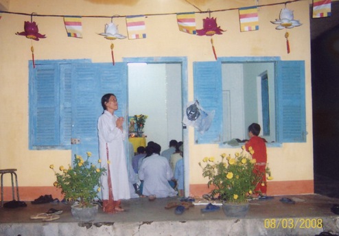 Có thể nói gia đình anh Sanh là người đã dành nhiều tâm huyết công đức trong công việc hình thành và phát triển Niệm Phật Đường Qui Hoà. Anh hướng dẫn bà con bệnh nhân theo đạo Phật ra chùa Minh Tịnh, Hoà Đồng, TP Qui Nhơn qui y mỗi đợt vài chục người. Hằng đêm, anh hướng dẫn vài ba chục Phật tử tụng kinh tịnh độ, mỗi tháng 4 ngày có lễ Phật sám hối…