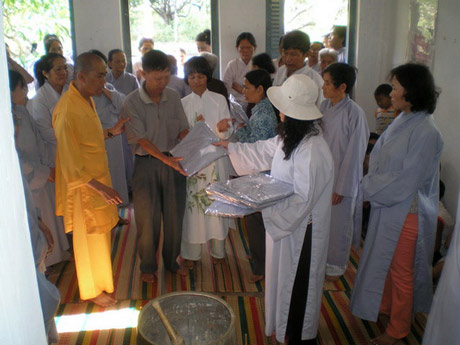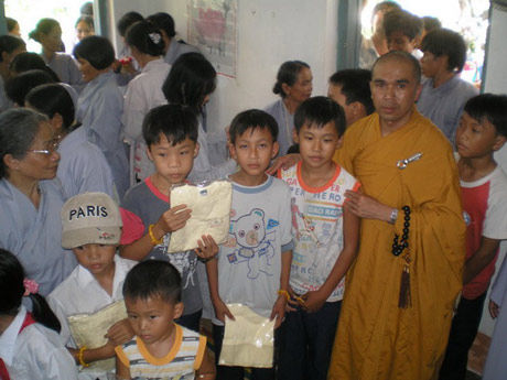 Phật tử Tâm Hương xúc động tâm sự: “Ở bên Mỹ, chúng con cũng phải cật lực lao động để mưu sinh và muốn có tiền gởi về giúp bà con nghèo trong những lúc khó khăn thiếu thốn, thiên tai dịch bệnh… Ni sư trú trì (Thích Nữ Kiến Nguyệt chùa Phật An, Mỹ Quốc) đã hướng dẫn chúng con làm bánh, làm chả v.v… đem ra chợ bán gây quỹ từ thiện gởi về cứu trợ. Thật tình, có đến tận nơi, có trông tận mắt như thế này thì chúng ta mới thấu hiểu một phần nào những khó khăn vất vả mà bà con nghèo bệnh tật đã và đang gặp phải.