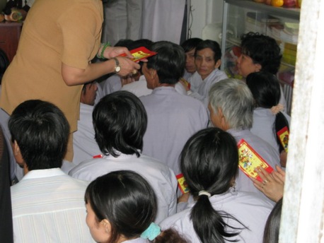 Đến thăm vài gia đình, chúng tôi cảm nhận bà con nơi đây sống thật giản dị nhưng không kém phần sôi động. Phật tử Đồng Tâm hớn hở khoe: “Từ sáng mùng một đến chiều mùng ba tết, hội đồng bệnh nhân cho các gia đình trong viện đấu thầu mở 6 gian hàng hội chợ như quay số, lô tô, máy bay, xe điện v.v… vui lắm thầy ạ. Hai năm nay lại còn được lên chùa đón giao thừa và lễ Phật đầu năm nữa chứ…” Chúng tôi như chợt vui lây với niềm vui hạnh phúc của bà con Phật tử nơi đây.