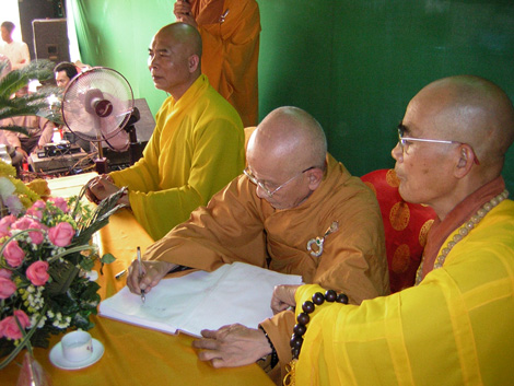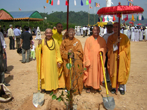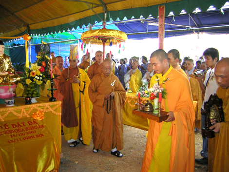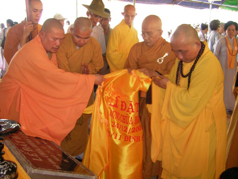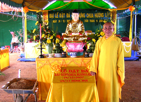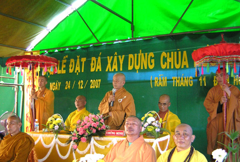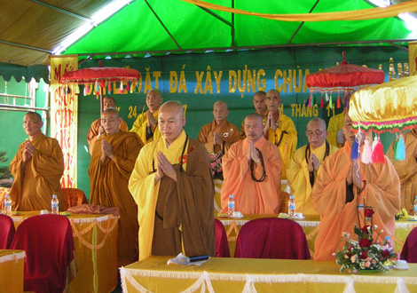 Lễ đặt đá xây chùa. HT. Thích Toàn Đức – Phó Ban Trị sự đương vi sám chủ