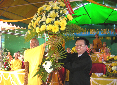 Thương cảm Phật tử vùng sâu tuy nghèo khó nhưng rất có tâm đạo, TT. Thích Thanh Tân – Phó BTS, Viện chủ Tổ Đình Linh Quang (Đà Lạt ) đã hoan hỷ đỡ đầu trợ duyên và cúng dường 50 triệu để san ủi mặt bằng và lo lễ tổ chức đặt đá xây dựng chùa”.