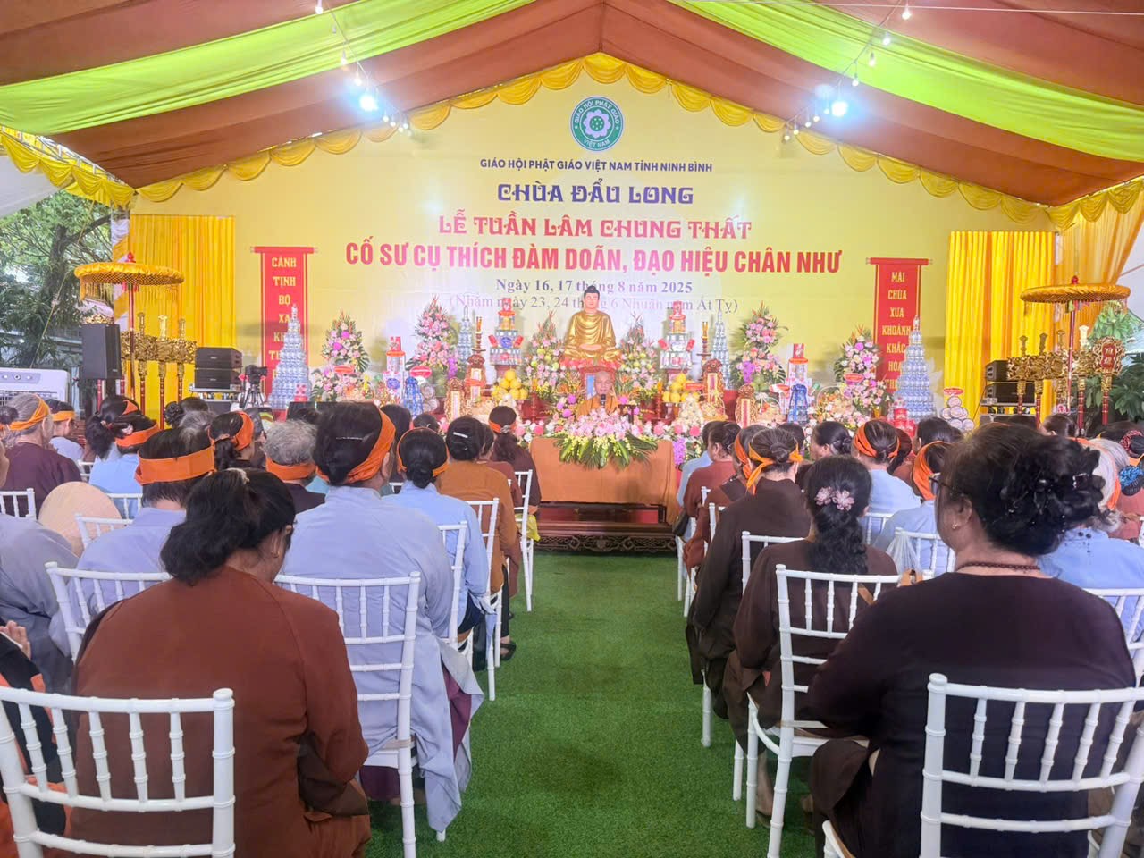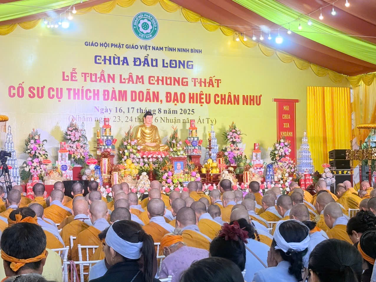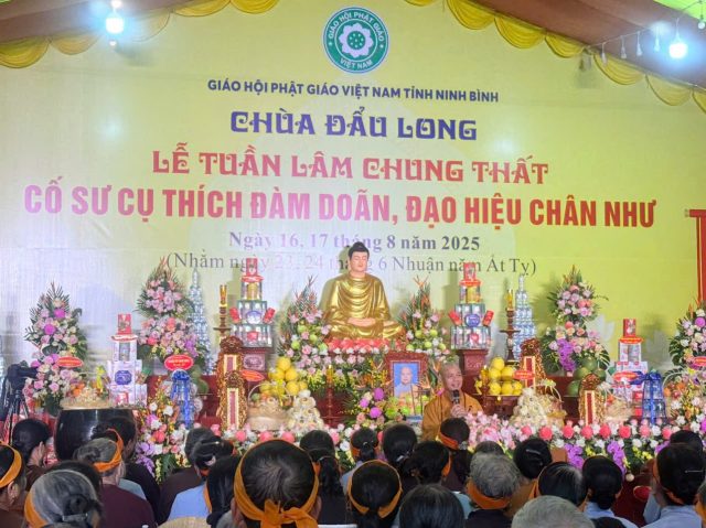 Sáng ngày 17/08/2025 (tức ngày 24/06 nhuận năm Ất tỵ), tại chùa Đẩu Long- P. Hoa Lư- tỉnh Ninh Bình; Môn đồ pháp quyến Ni chúng chốn Tổ Vân Bồng- chùa Chẹo đã long trọng tổ chức lễ Tuần định nghiệp 49 cho cố Sư cụ: Thích Đàm Doãn, sinh năm 1944 – Giới lạp 47 năm- trụ thế 82 tuổi-viện chủ chùa Đẩu Long.