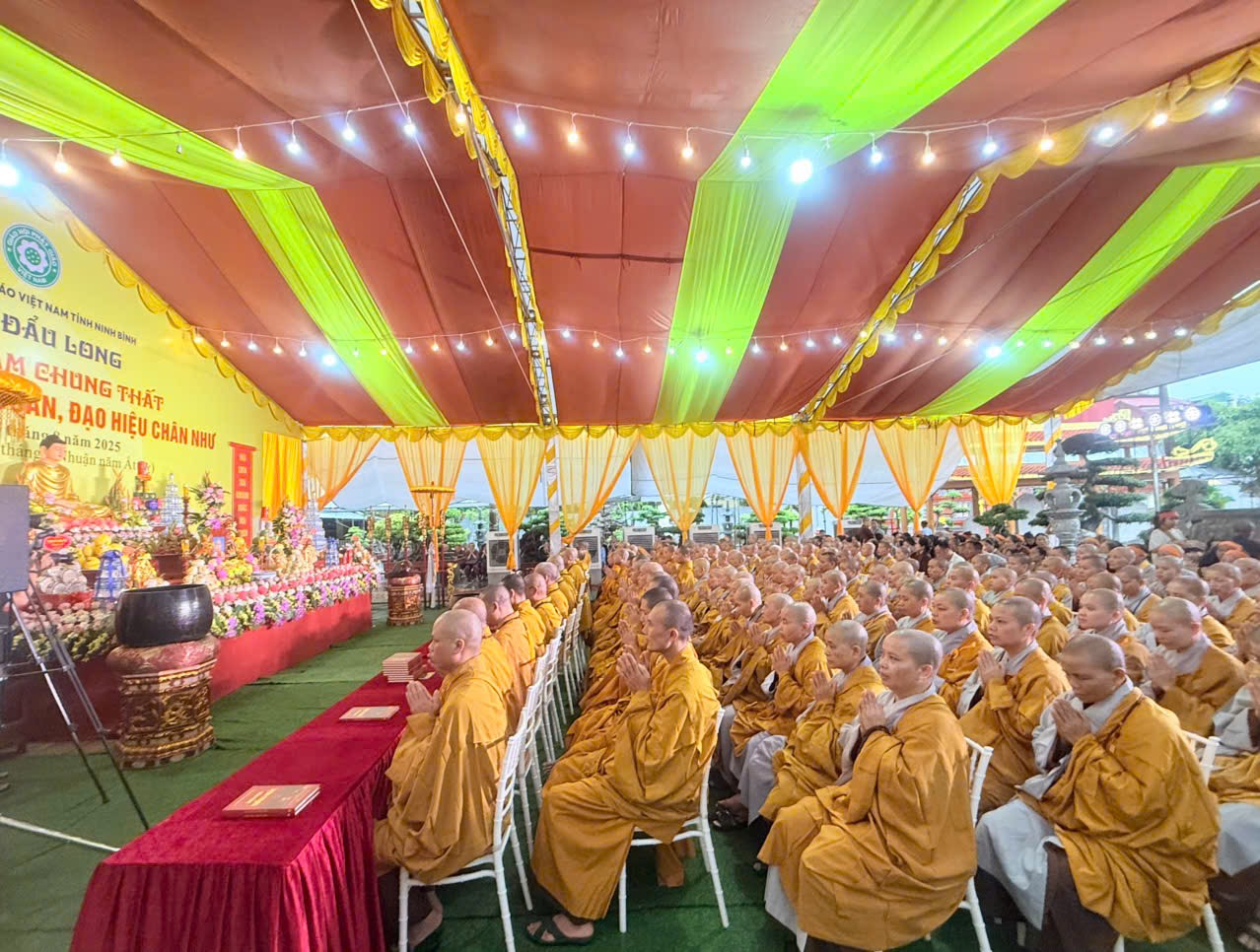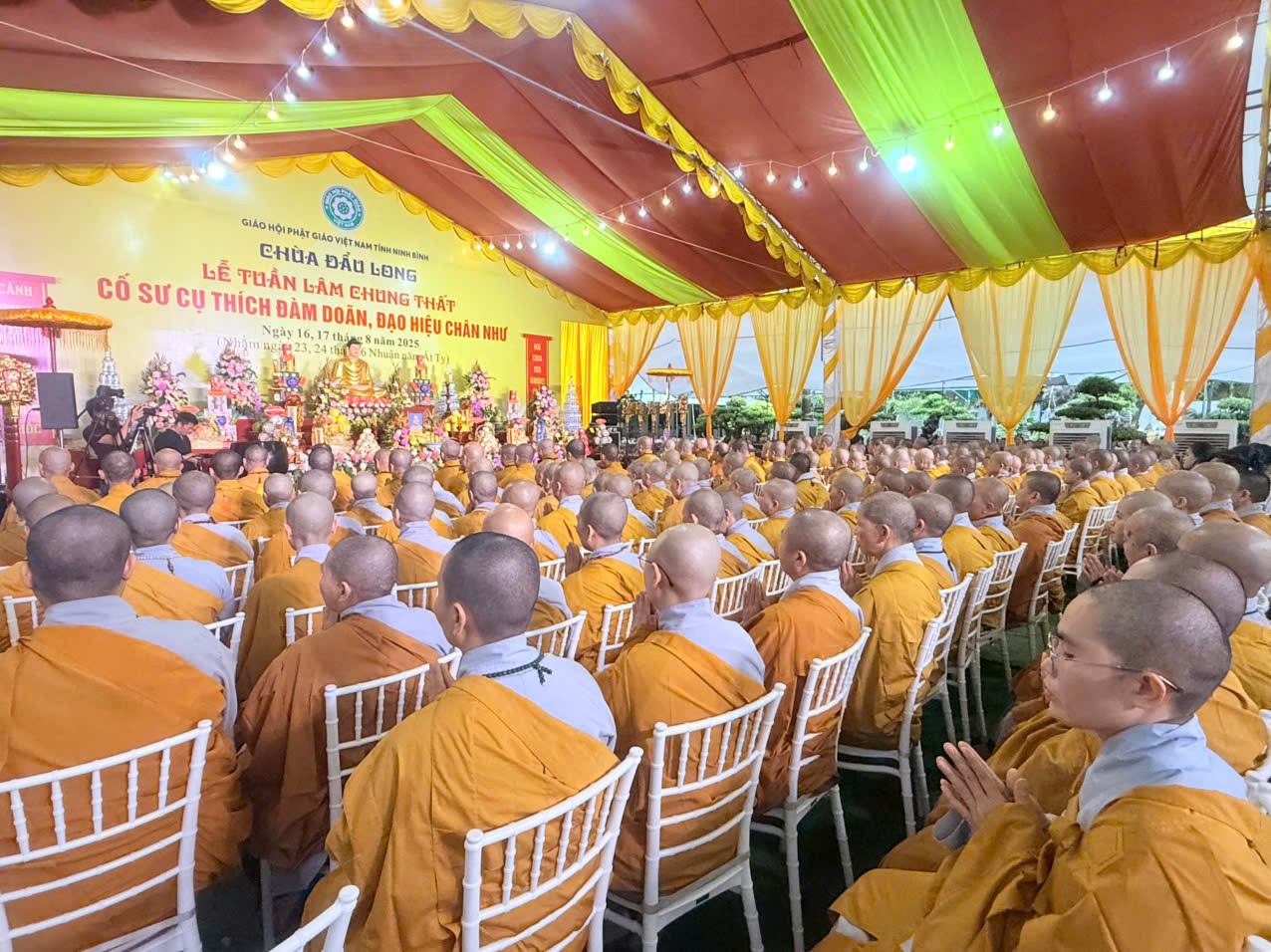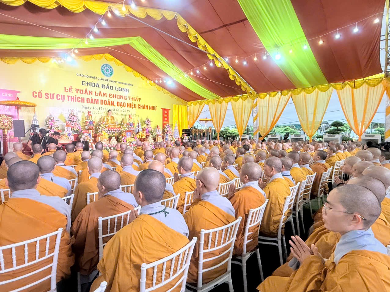 Sáng ngày 17/08/2025 (tức ngày 24/06 nhuận năm Ất tỵ), tại chùa Đẩu Long- P. Hoa Lư- tỉnh Ninh Bình; Môn đồ pháp quyến Ni chúng chốn Tổ Vân Bồng- chùa Chẹo đã long trọng tổ chức lễ Tuần định nghiệp 49 cho cố Sư cụ: Thích Đàm Doãn, sinh năm 1944 – Giới lạp 47 năm- trụ thế 82 tuổi-viện chủ chùa Đẩu Long.