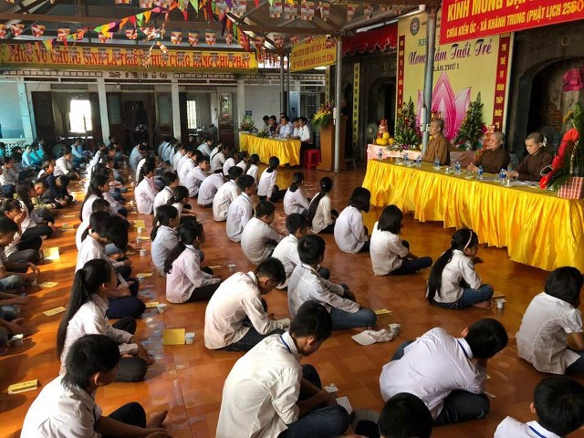 Sau lễkhai khóa, các bạn trẻ đã được quý thầy, quý sư cô hướng dẫn thời khóa lạy Phật, ngồi thiền, nghe chuông chánh niệm, học “Phép tắc người con”, tụng kinhVu Lan…Tuy còn nhiều khó khăn về cơ sở vật chất, thời tiết nóng bức nhưng hiện lên trên nét mặt các em nhỏ niềm hoan hỷ, an lạc, thảnh thơi đầy sức sống như một niềm khích lệ cho Ni sư trụ trì, chư Ni và Phật tử bản tự tổ chức tiếp các khoá tu bổ ích như thế nữa.