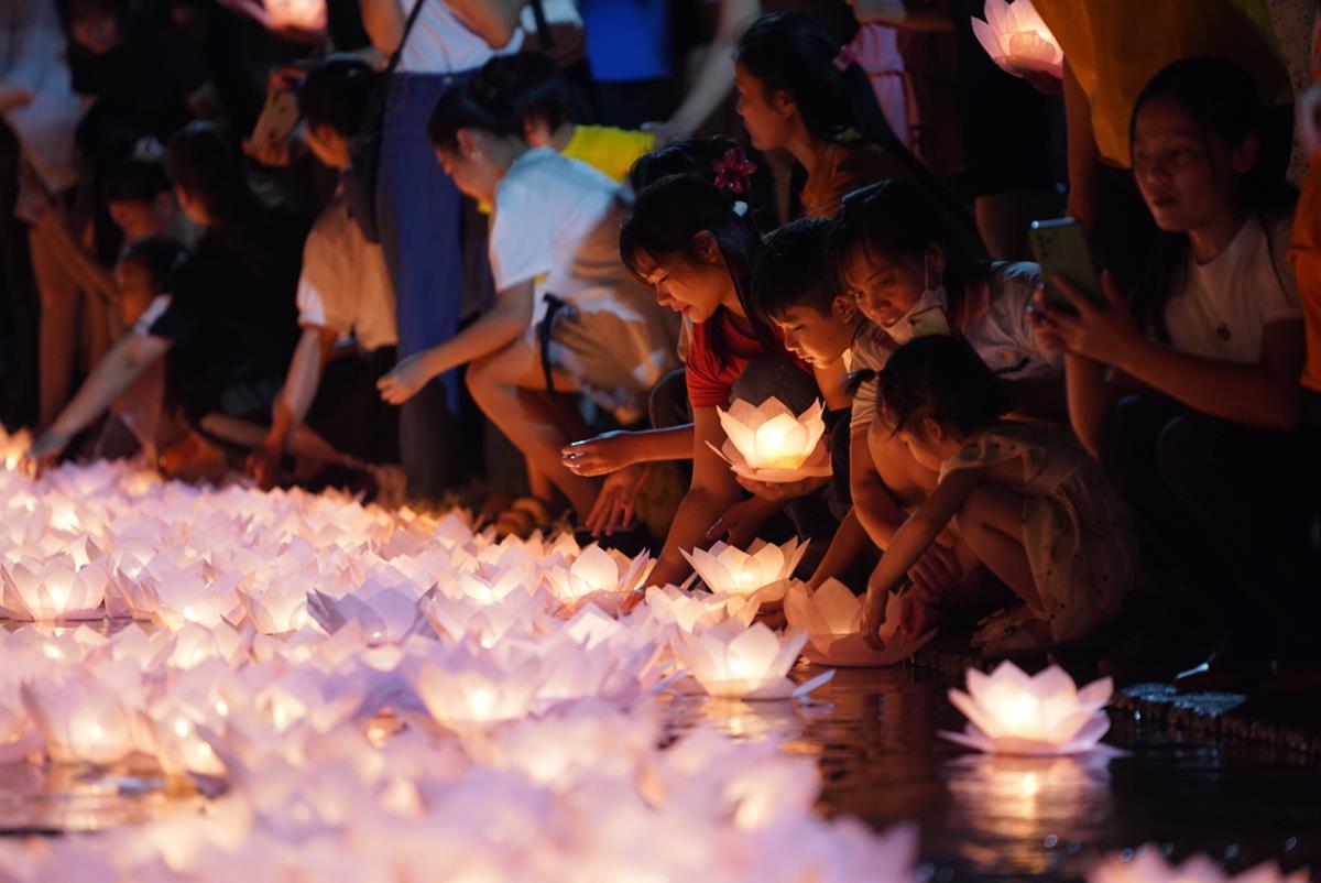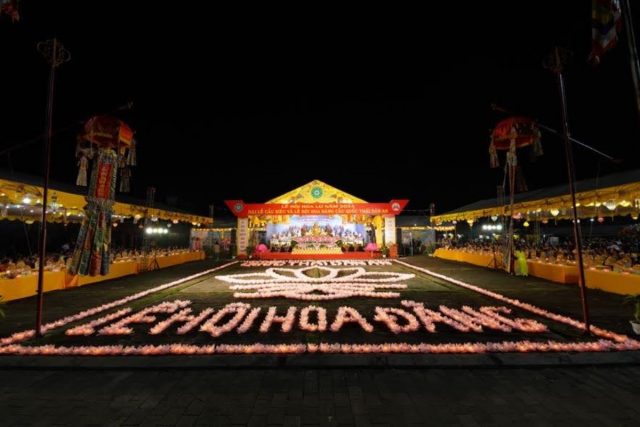 Sau đó, trong không khí thiêng liêng, chư Tôn đức chứng minh cùng chính quyền và đông đảo nhân dân Phật tử đã thực hiện niêm hương bạch Phật, thả hoa đăng cầu nguyện trên sông Sào Khê, cầu nguyện cho một năm mưa thuận gió hòa, không xảy ra thiên tai, dịch bệnh, cùng mong chờ và hướng đến cuộc sống ấm no, nhân dân an lạc, thế giới hòa bình, quốc gia hưng thịnh.