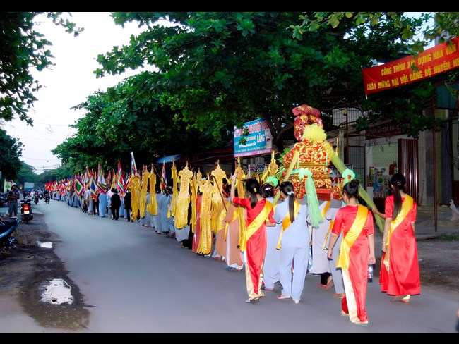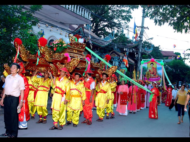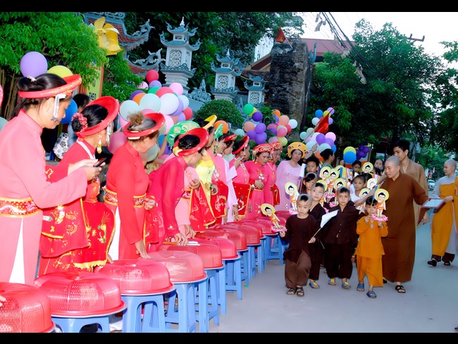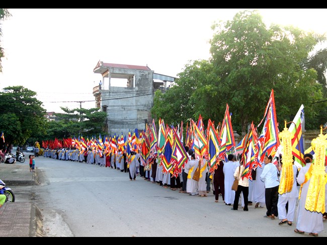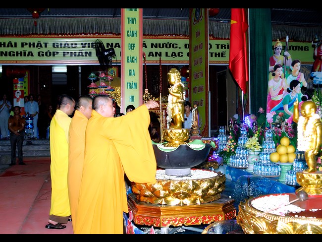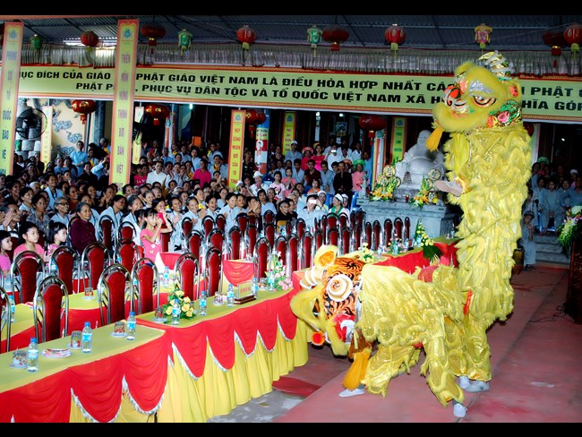 Trong niềm hân hoan ngày Đản sinh, các Phật tử gần xa không quản ngại thời tiết vẫn thực hiện nghi lễ rước và diễu hành Đức Phật, cùng với đội Lân càng làm cho không khí ngày lễ thêm bừng nở như đóa vô ưu. Buổi lễ diễn ra trong không khí trang nghiêm, trong niềm hoan hỷ của chư Tôn thiền đức Tăng, Ni và nhân dân Phật tử tham dự.
