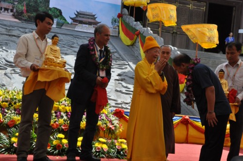 Địa điểm dừng chân cuối cùng là chùa Bái Đính. Đón tiếp đoàn có HT Thích Thanh Tứ – Phó chủ tịch thường trực HĐTS GHPGVN, Trụ trì chùa Bái Đính, HT Thích Thanh Đàm – Thành viên HĐCM GHPGVN, Trưởng BTS Tỉnh hội Phật giáo tỉnh Ninh Bình, cùng chư tôn đức BTS tỉnh hội tỉnh Ninh Bình và đông đảo Phật tử địa phương cùng về tham dự.