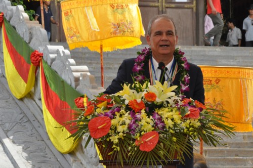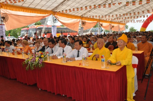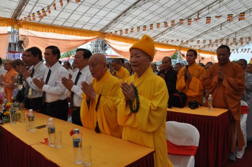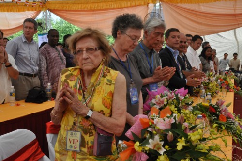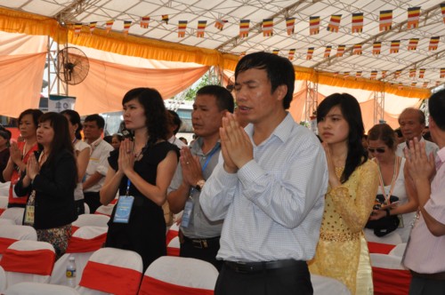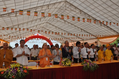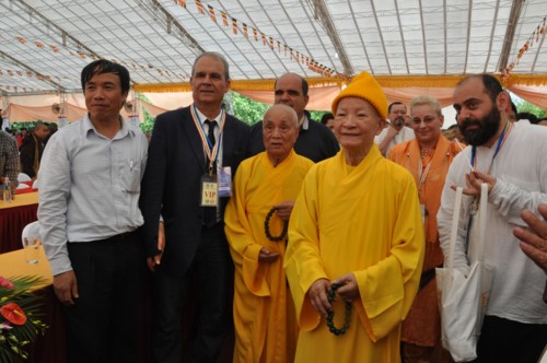 Cuối buổi lễ chư tôn đức cùng đoàn đại biểu làm lễ niêm hương bạch Phật “Cầu nguyện thế giới hoà bình" và dự tiệc cơm chay thân mật…