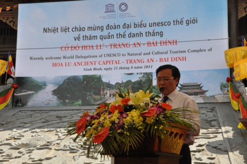 Ngày 21/8/2011, Đoàn đại biểu UNESCO thế giới về thăm quần thể danh thắng một số điểm du lịch của Ninh Bình. Đây chính là cơ hội để giới thiệu, quảng bá để UNESCO công nhận Quần thể danh thắng Cố Đô -Tràng An và Bái Đính là di sản Thiên Nhiên Thế giới.