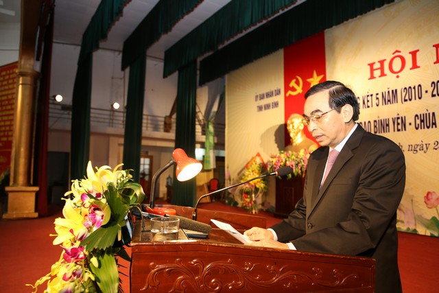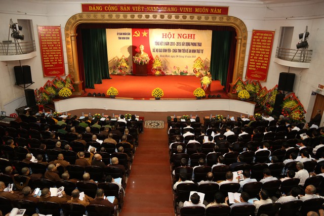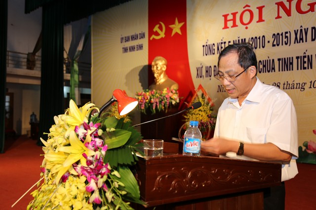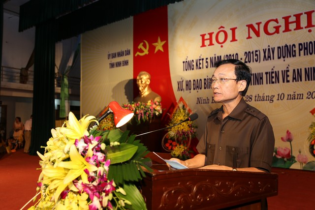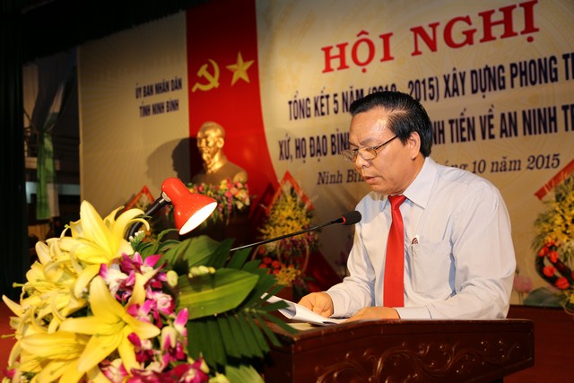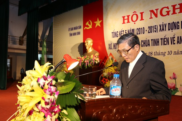 Tại hội nghị ông Lê Văn Dung – Phó chủ tịch UBND tỉnh báo cáo tổng kết 5 năm công tác xây dựng phong trào Xứ, họ đạo bình yên , chùa tinh tiến về ANTT.