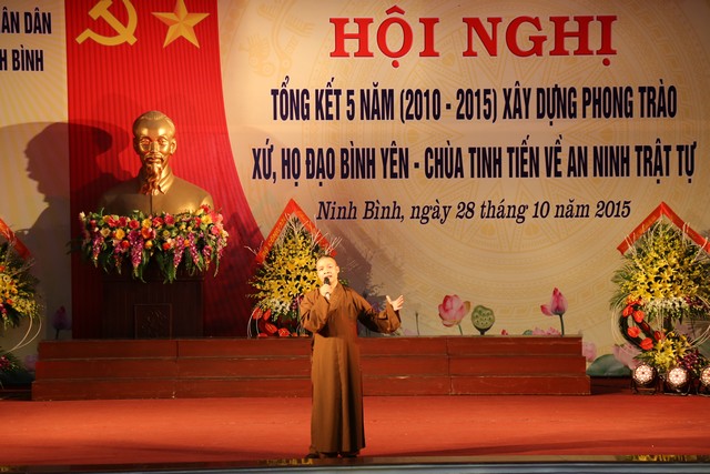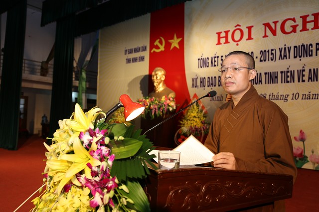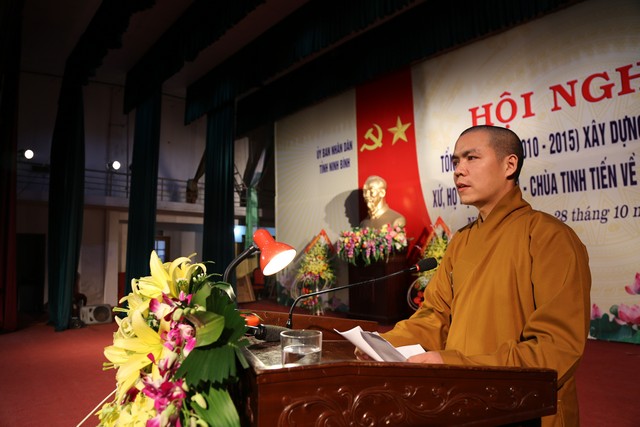 ĐĐ.Thích Thanh Cương – Phó BTS Phật giáo huyện Hoa Lư với tham luận “Chùa Tổ Linh với phong trào xây dựng chùa tinh tiến về ANTT góp phần xây dựng khu dân cư không có tội phạm ma túy và tệ nạn xã hội”.