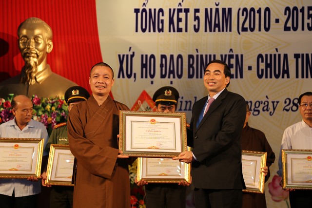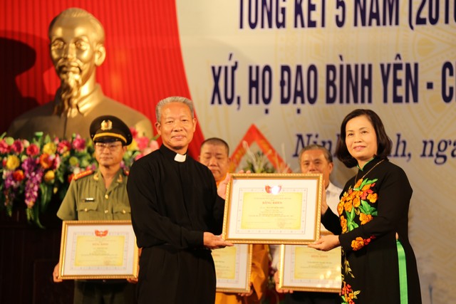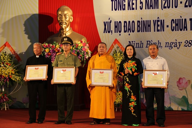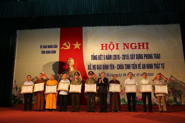 Nhân dịp này Bộ công an, Ủy ban T.Ư MTTQVN, UBND tỉnh Ninh Bình đã trao tặng bằng khen cho các tập thể và các cá nhân đã có thành tích xuất sắc trong phong trào 5 năm xây dựng phong trào “Xứ, họ đạo bình yên, chùa tinh tiến về an ninh trật tự”.