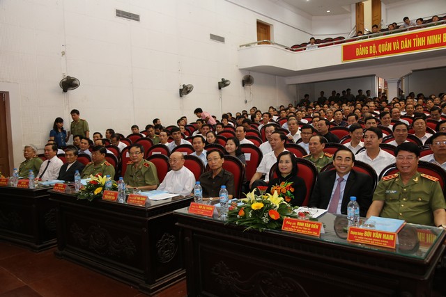 Về phía chính quyền có Thượng tướng Bùi Văn Nam – Ủy viên BCH T.Ư Đảng –Thứ trưởng Bộ Công an; ông Mai Văn Ninh – Ủy viên BCH T.Ư Đảng – Phó trưởng Ban Tuyên giáo T.Ư; bà Bùi Thị Thanh – Phó chủ tịch Ủy ban T.Ư MTTQVN; ông Dương Ngọc Tấn – Phó trưởng Ban tôn giáo Chính phủ; bà Nguyễn Thị Thanh – Ủy viên dự khuyết BCH T.Ư Đảng – Bí thư tỉnh ủy- trưởng Đoàn Đại biểu Quốc hội tỉnh ; ông Đinh Văn Điến- Phó Bí thư Tỉnh ủy – Chủ tịch UBND tỉnh cùng đại diện lãnh đạo các sở ban ngành HĐND, UBND, UB MTTQ các cơ chức năng các cá nhân, tập thể điển hình tiên tiến trong phong trào xây dựng Xứ, họ đạo bình yên , chùa tinh tiến về ANTT trên địa bàn tỉnh.