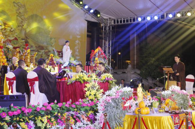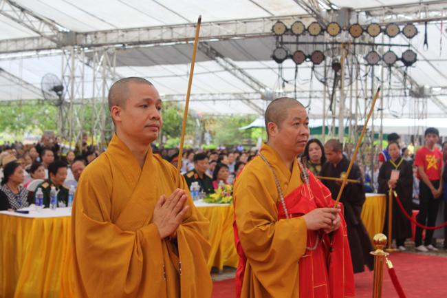 Buổi lễ được đặt dưới sự chứng minh của: Thượng tọa Thích Thọ Lạc – Ủy viên thường trực HĐTS TW GHPGVN, Trưởng BTS GHPGVN tỉnh Ninh Bình; Thượng tọa Thích Minh Quang- Phó BTS kiêm Chánh thư ký BTS GHPGVN tỉnh Ninh Bình; Thượng tọa Thích Đức Lợi – UVTT BTS kiêm Trưởng ban Hoằng pháp BTS GHPGVN tỉnh Ninh Bình cùng chư tôn đức Tăng Ni đến từ các chùa, tự viện trong và ngoài tỉnh.