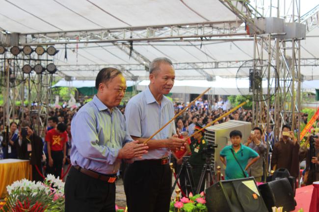 Về phía khách mời có: Trung tướng Hoàng Khánh Hưng – Nguyên Phó tư lệnh Chính trị Bộ tư lệnh công binh, nguyên Chính ủy Học viện Kĩ thuật Quân Sự Bộ Quốc Phòng; Thiếu tướng Ngô Văn Hùng – Nguyên phó tư lệnh quân khu 2, Đại biểu Quốc hội khóa XII – XIII; Trung tướng Nguyễn Văn Kiểu – Nguyên viện trưởng Học viện Quốc phòng; Thiếu tướng Lê Huy Mai – nguyên Phó tổng Thanh tra Bộ quốc phòng cùng các vị tướng lĩnh, anh hùng lực lượng vũ trang QĐND Việt Nam các thời kỳ và hơn 10 nghìn nhân dân, Phật tử về tham dự.