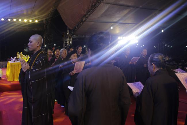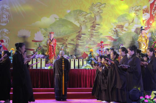 Trong buổi sáng này, mở đầu là nghi thức thỉnh Phật đại khoa cầu siêu và nghi thức quy y Tam Bảo cho vong linh.