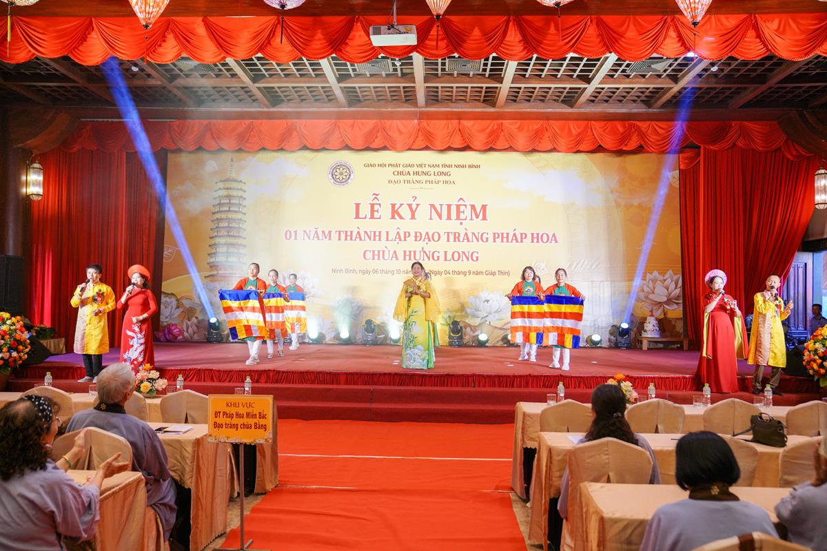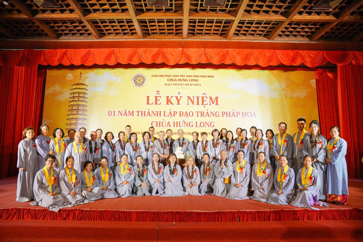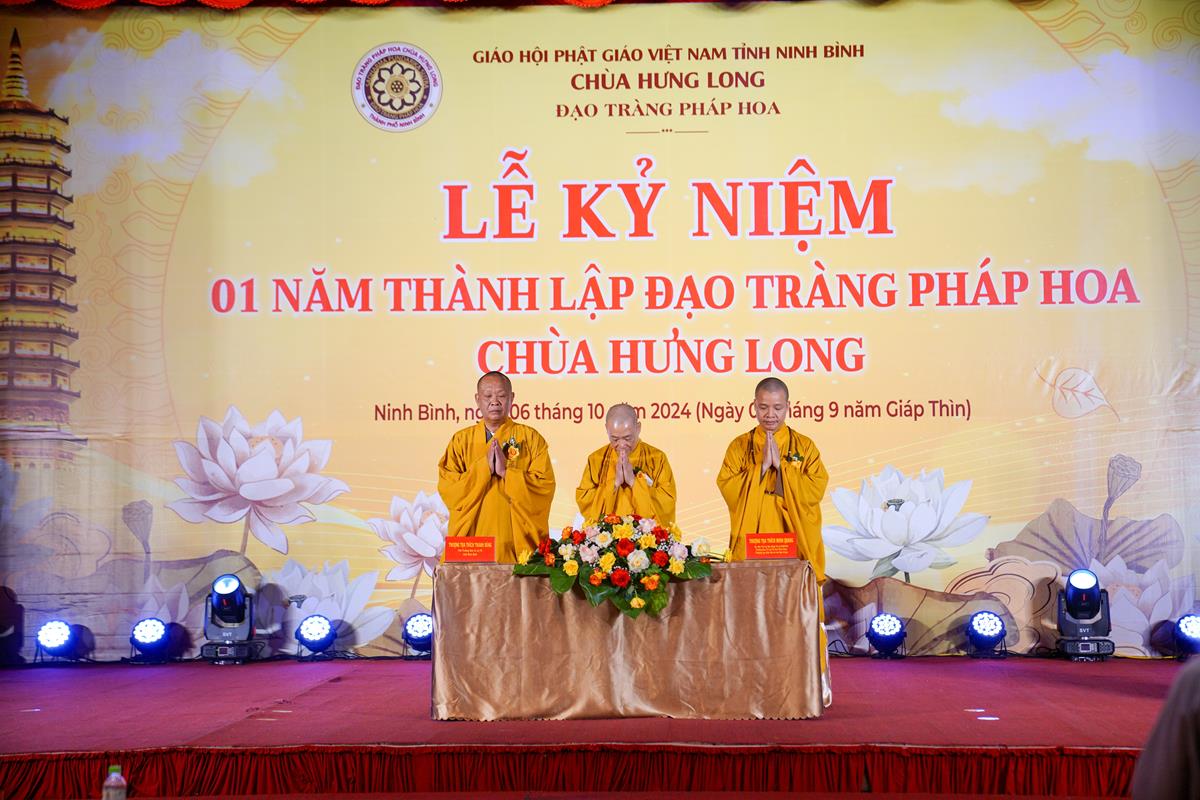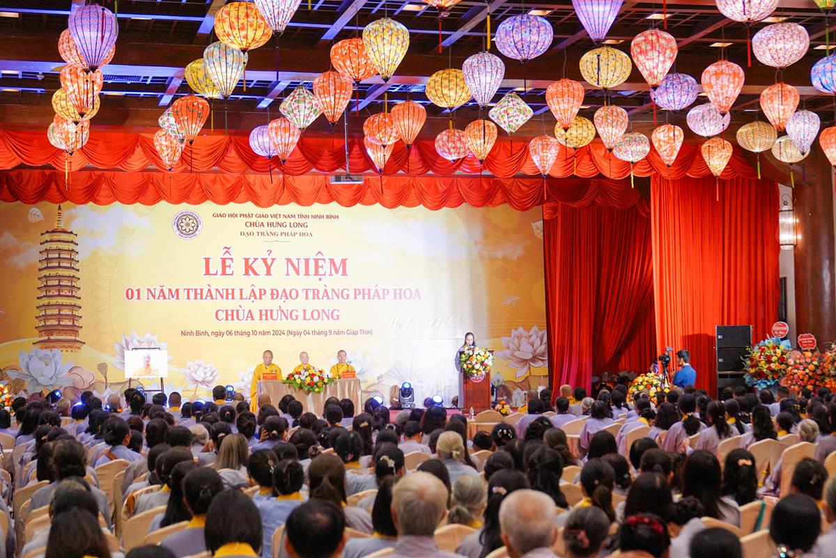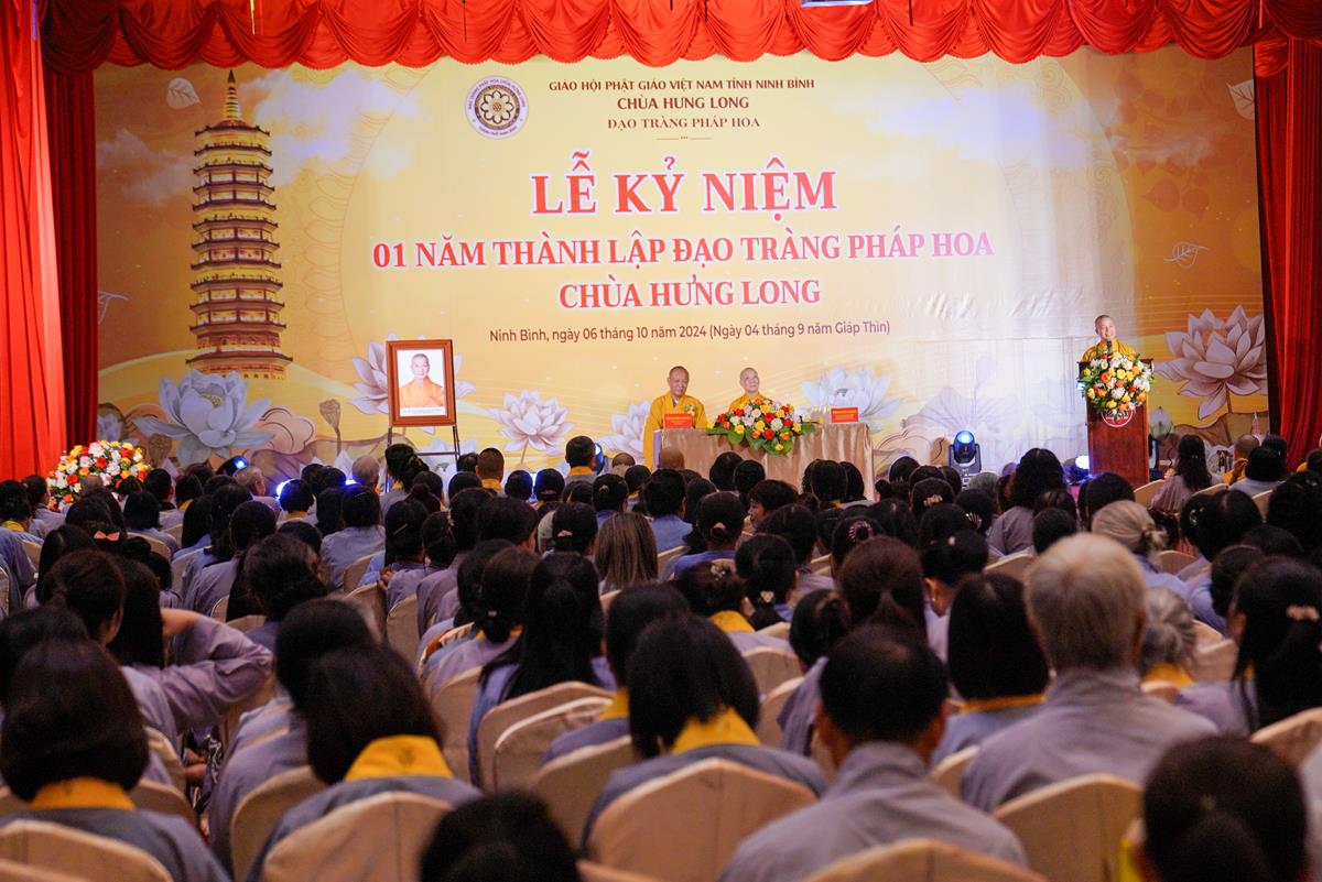 Ban đạo từ tại buổi lễ, Hòa Thượng Thích Bảo Nghiêm – Phó Chủ tịch Hội đồng Trị sự, Trưởng ban Hoằng pháp Trung ương cũng đã ôn lại những thành tựu và dấu ấn của khóa tổng tu tại chùa Bái Đính cách đây một năm, với sự hiện diện của gần 7000 Phật tử Đạo tràng Pháp hoa Miền Bắc. Trong niềm hân hoan đó, Đạo tràng Pháp hoa Chùa Hưng Long, tỉnh Ninh Bình – nơi Trụ xứ của Thượng Tọa Trưởng ban Trị sự tỉnh Trụ trì đã được thành lập và phát triển mạnh mẽ.