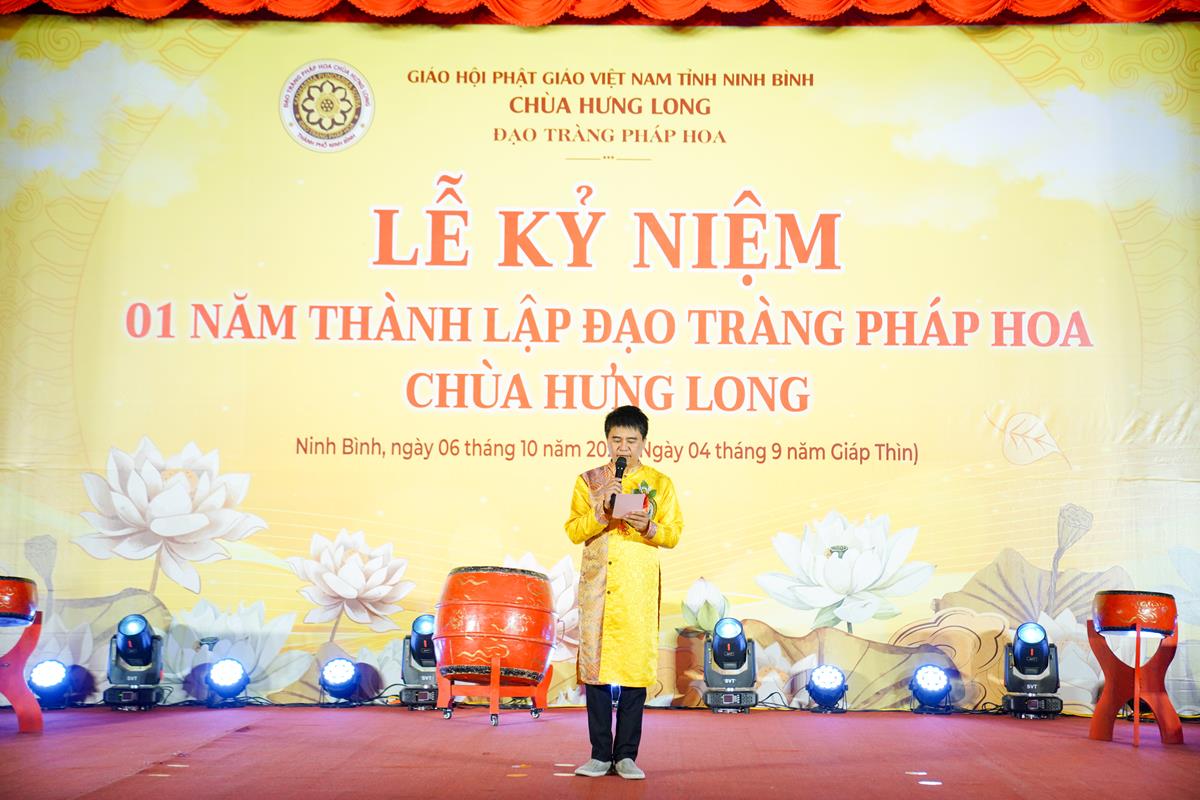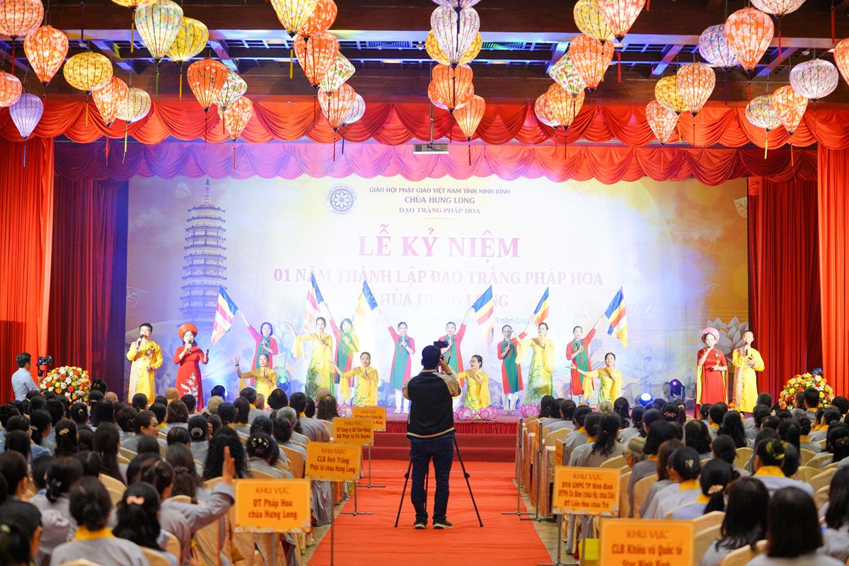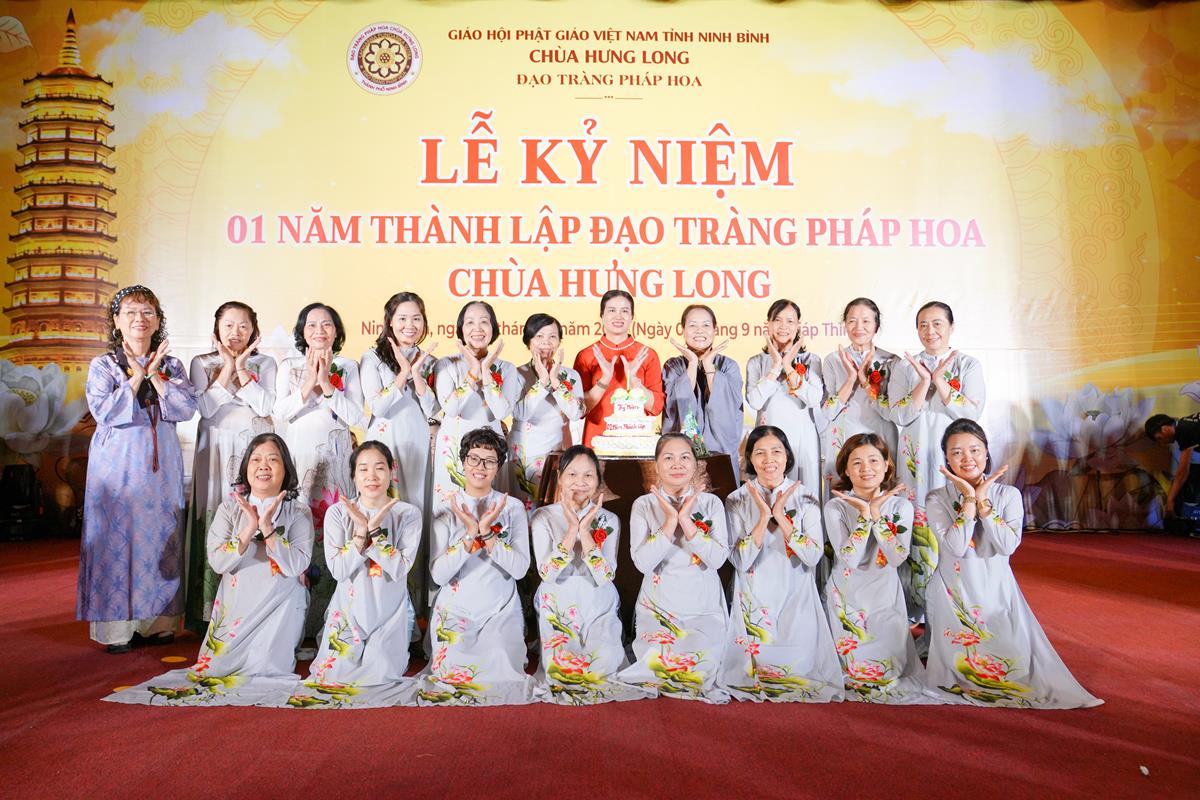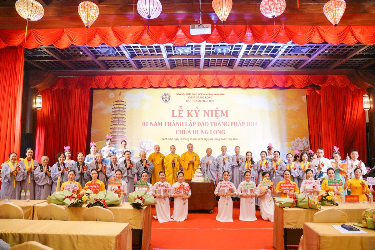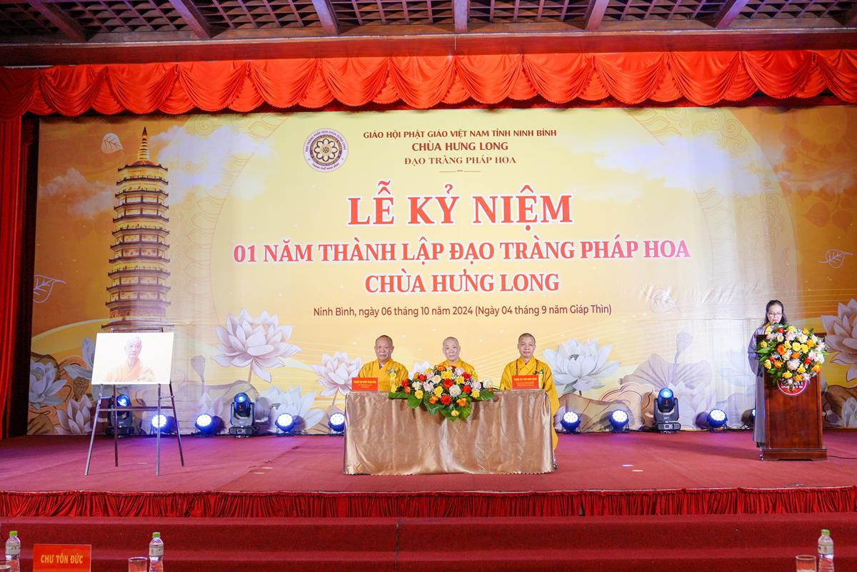 Ban đạo từ tại buổi lễ, Hòa Thượng Thích Bảo Nghiêm – Phó Chủ tịch Hội đồng Trị sự, Trưởng ban Hoằng pháp Trung ương cũng đã ôn lại những thành tựu và dấu ấn của khóa tổng tu tại chùa Bái Đính cách đây một năm, với sự hiện diện của gần 7000 Phật tử Đạo tràng Pháp hoa Miền Bắc. Trong niềm hân hoan đó, Đạo tràng Pháp hoa Chùa Hưng Long, tỉnh Ninh Bình – nơi Trụ xứ của Thượng Tọa Trưởng ban Trị sự tỉnh Trụ trì đã được thành lập và phát triển mạnh mẽ.
