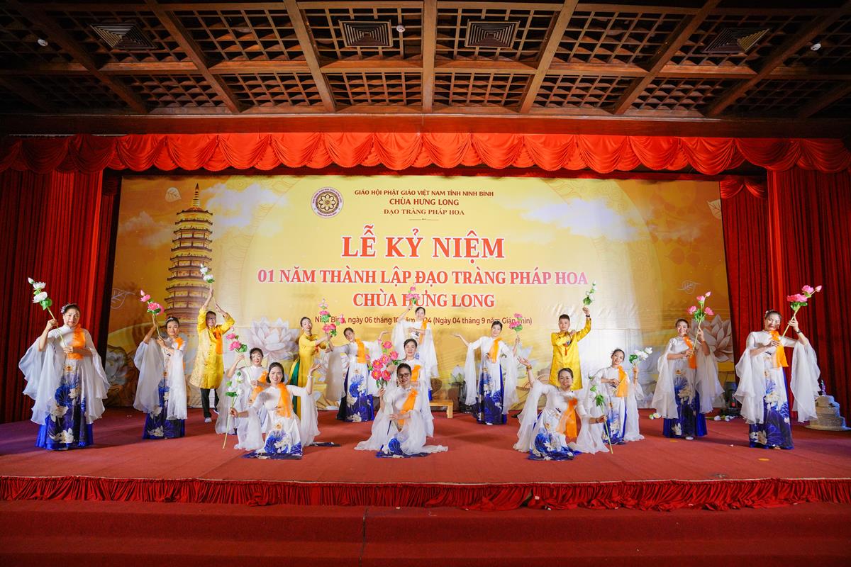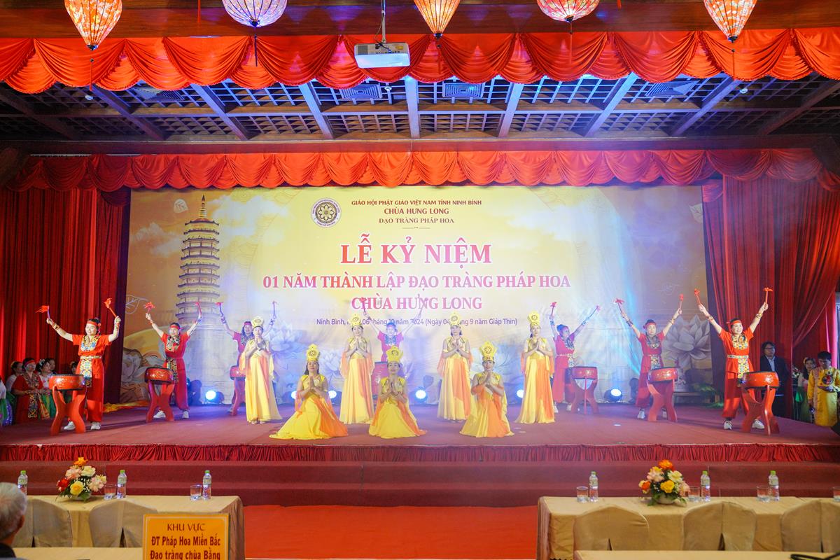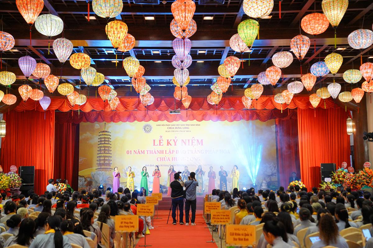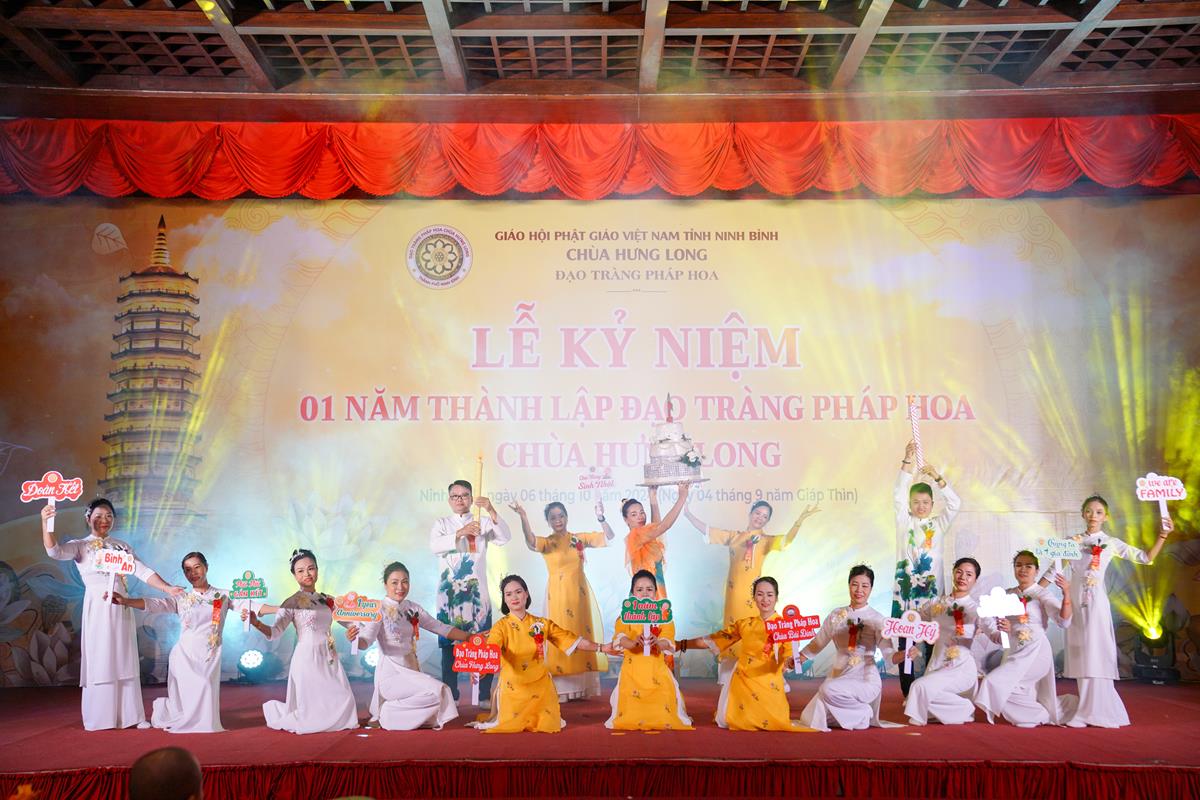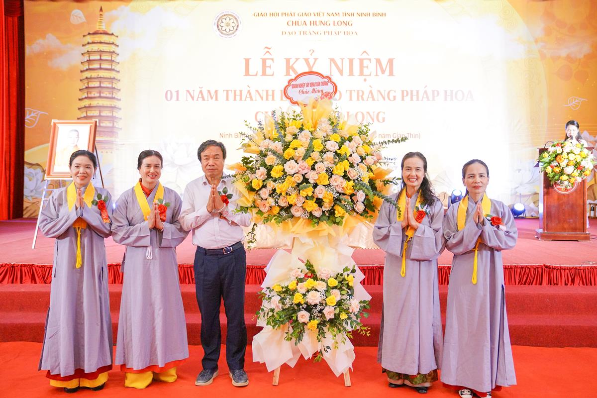 Ban đạo từ tại buổi lễ, Hòa Thượng Thích Bảo Nghiêm – Phó Chủ tịch Hội đồng Trị sự, Trưởng ban Hoằng pháp Trung ương cũng đã ôn lại những thành tựu và dấu ấn của khóa tổng tu tại chùa Bái Đính cách đây một năm, với sự hiện diện của gần 7000 Phật tử Đạo tràng Pháp hoa Miền Bắc. Trong niềm hân hoan đó, Đạo tràng Pháp hoa Chùa Hưng Long, tỉnh Ninh Bình – nơi Trụ xứ của Thượng Tọa Trưởng ban Trị sự tỉnh Trụ trì đã được thành lập và phát triển mạnh mẽ.