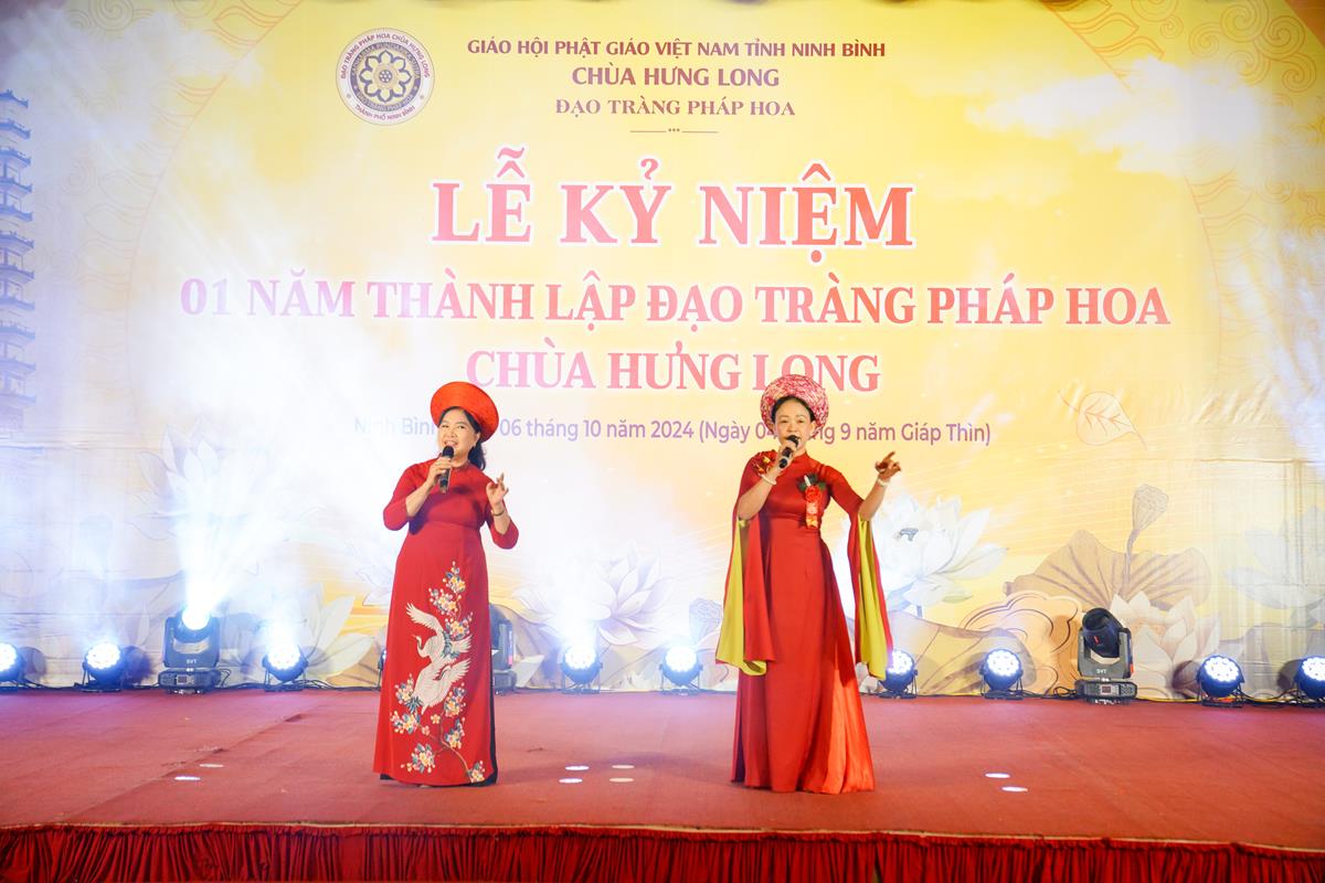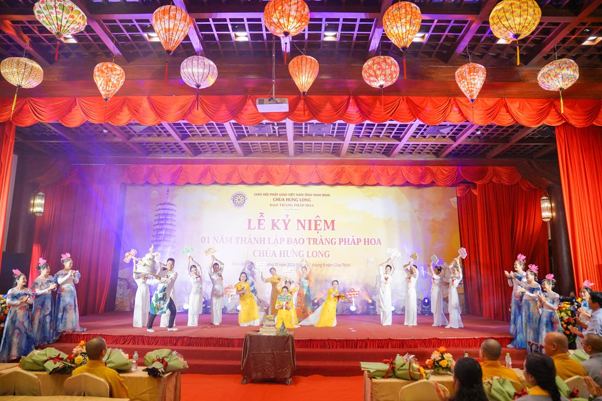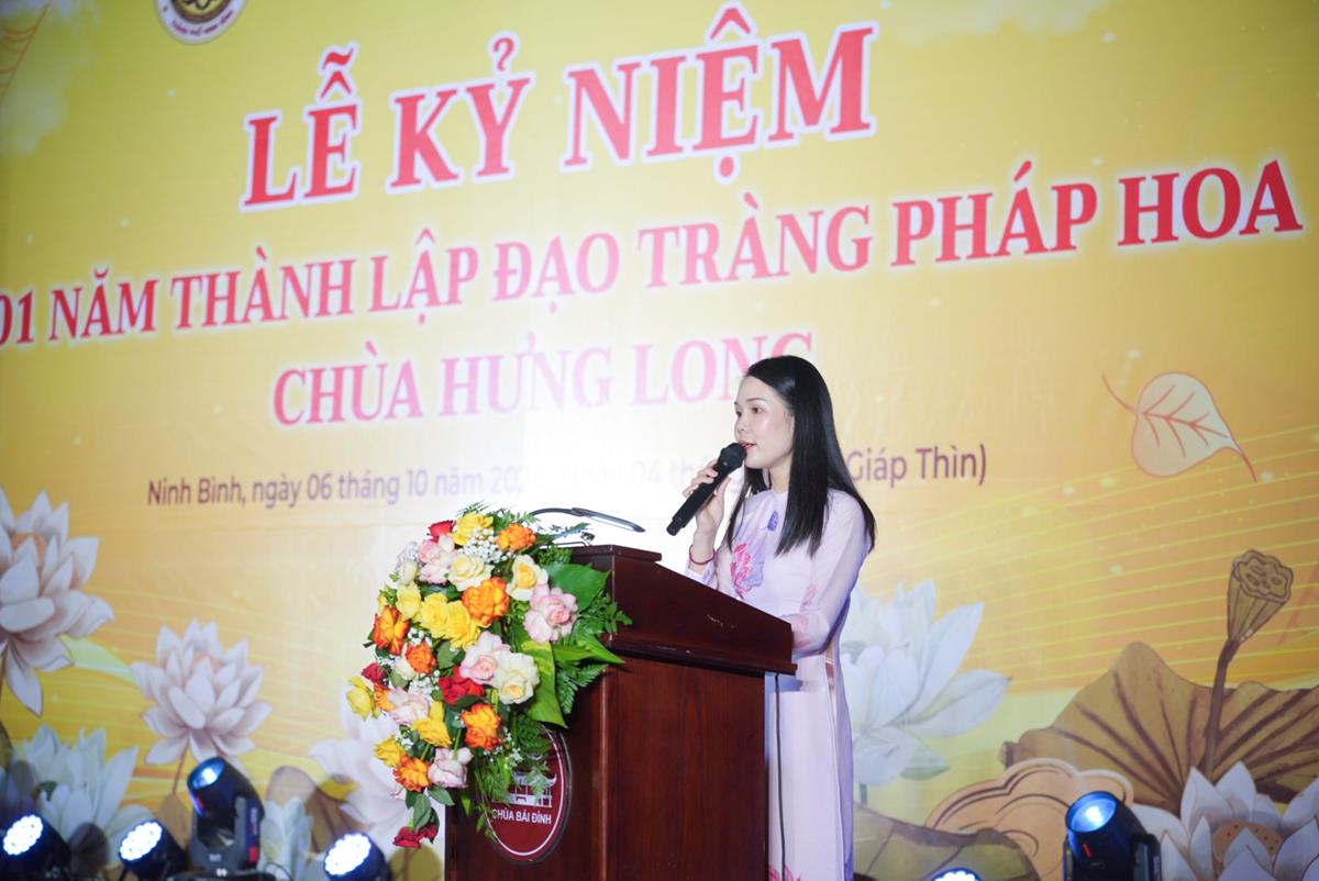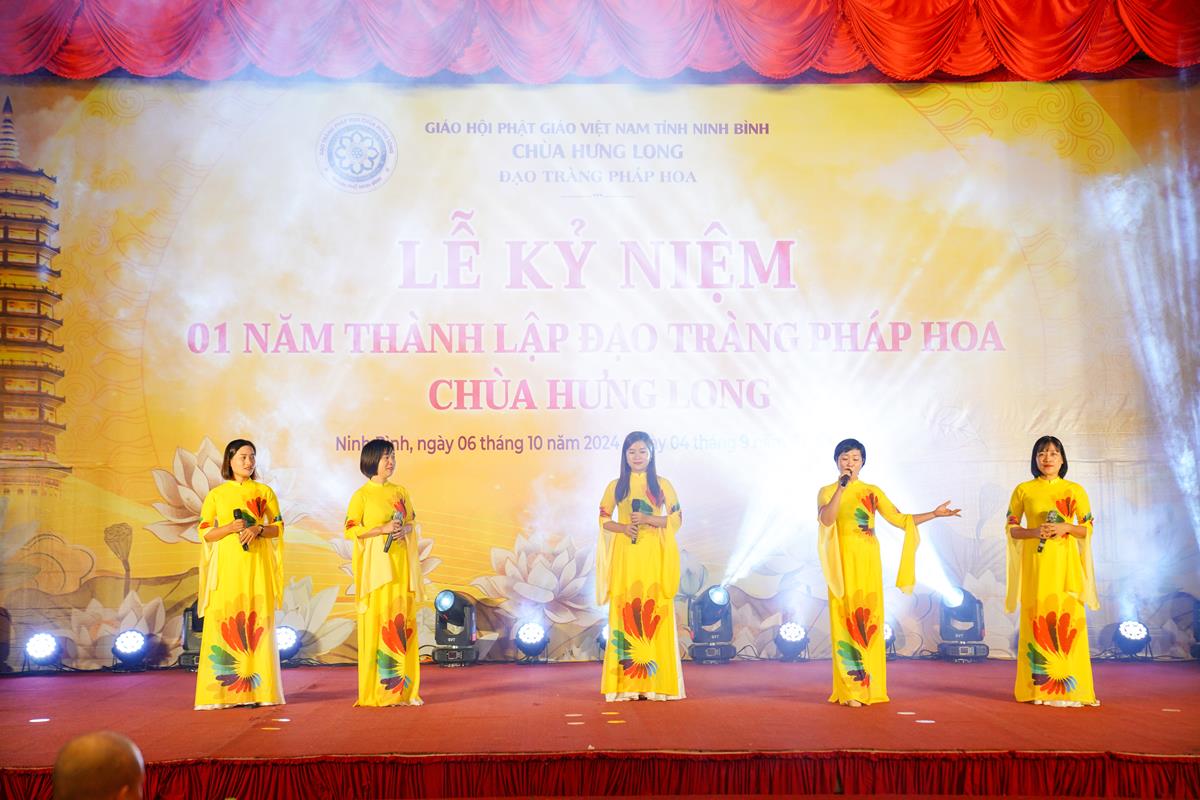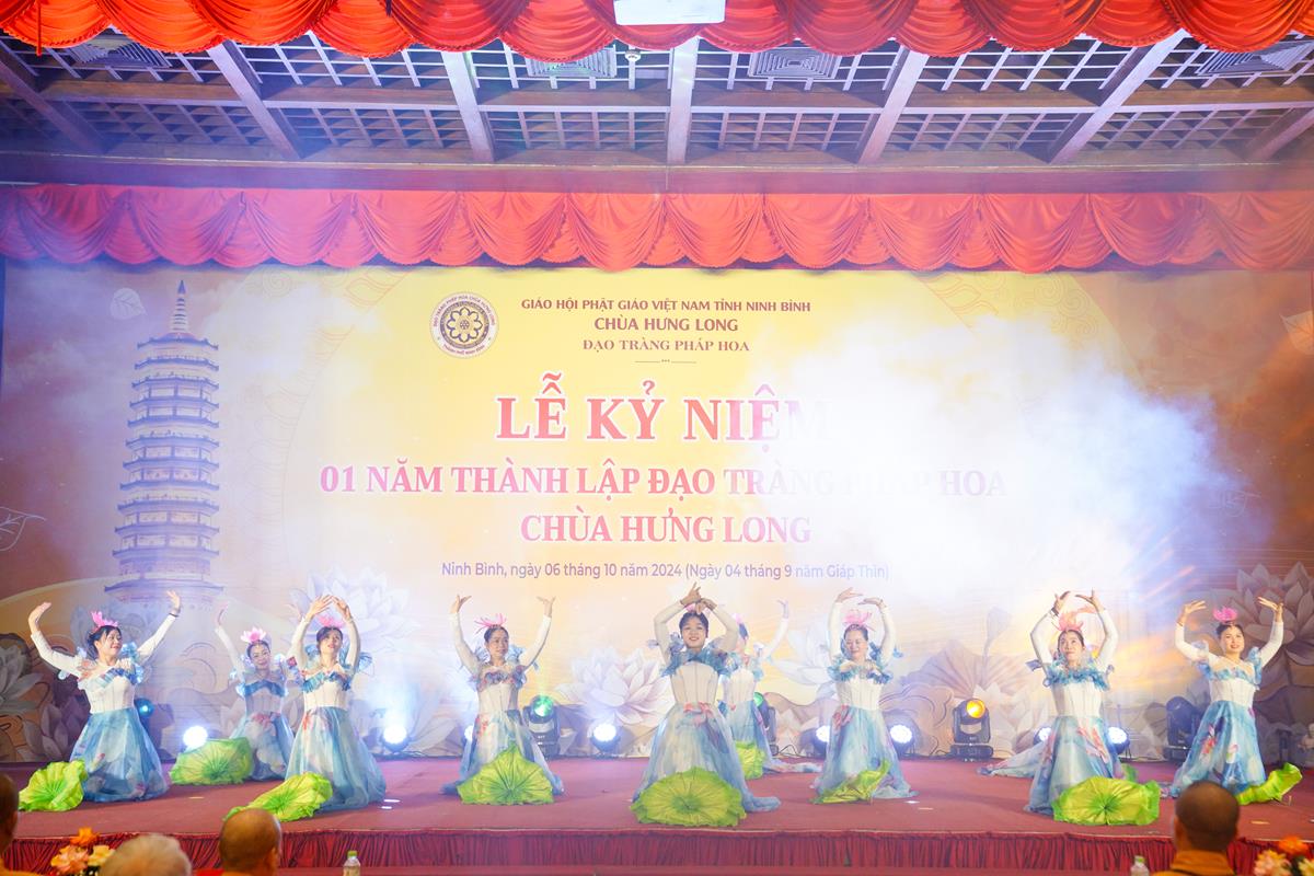 Ban đạo từ tại buổi lễ, Hòa Thượng Thích Bảo Nghiêm – Phó Chủ tịch Hội đồng Trị sự, Trưởng ban Hoằng pháp Trung ương cũng đã ôn lại những thành tựu và dấu ấn của khóa tổng tu tại chùa Bái Đính cách đây một năm, với sự hiện diện của gần 7000 Phật tử Đạo tràng Pháp hoa Miền Bắc. Trong niềm hân hoan đó, Đạo tràng Pháp hoa Chùa Hưng Long, tỉnh Ninh Bình – nơi Trụ xứ của Thượng Tọa Trưởng ban Trị sự tỉnh Trụ trì đã được thành lập và phát triển mạnh mẽ.