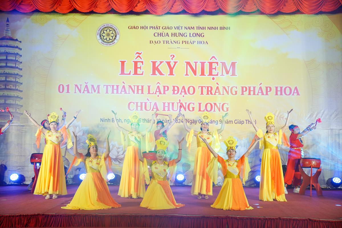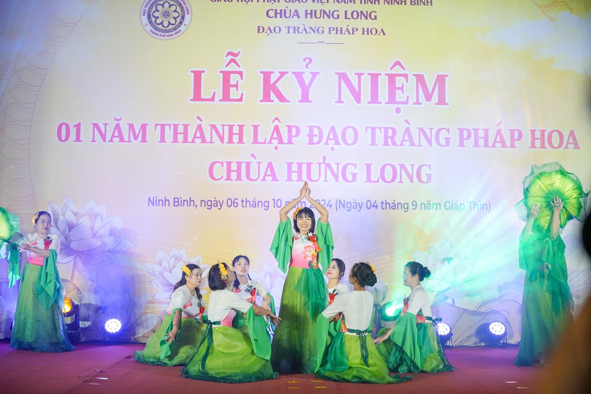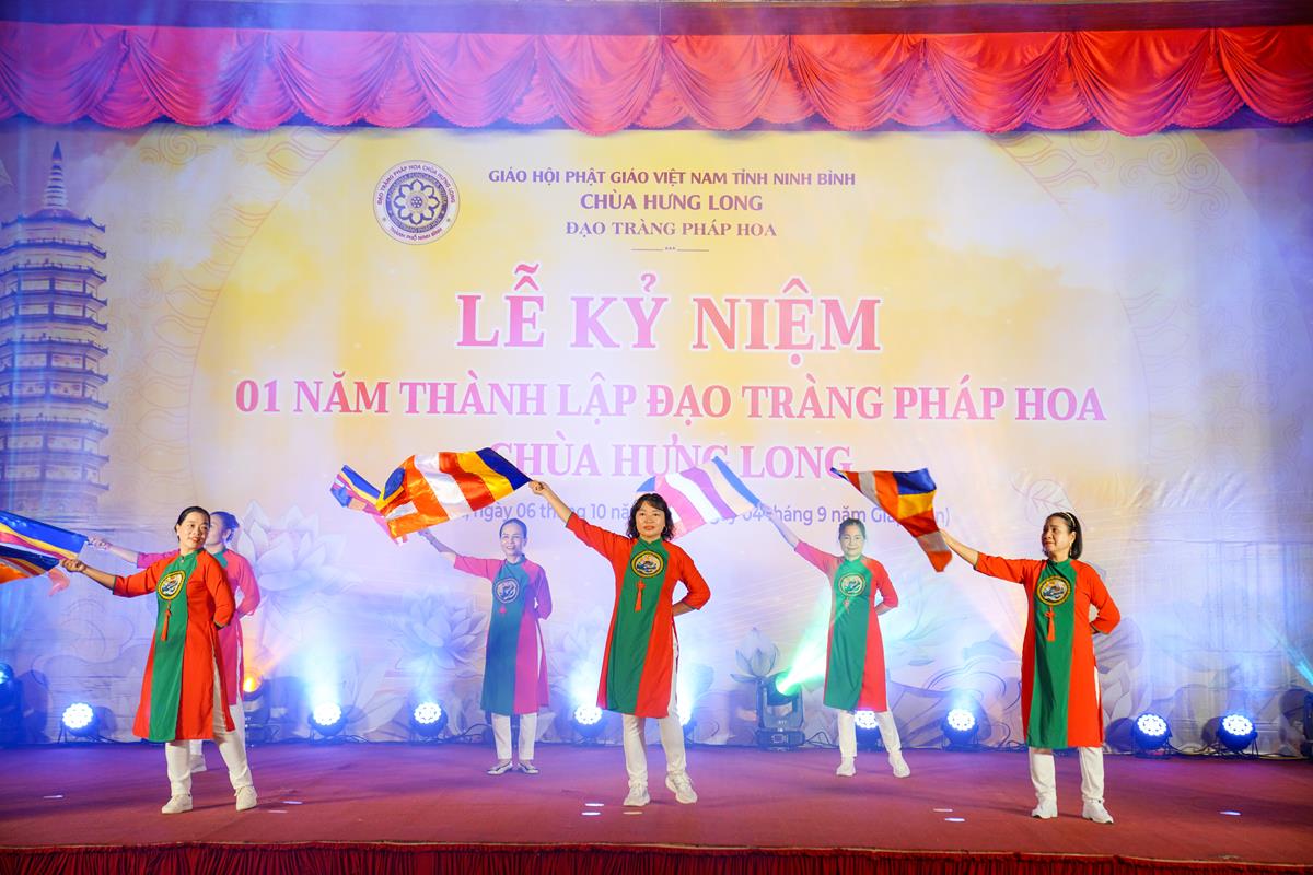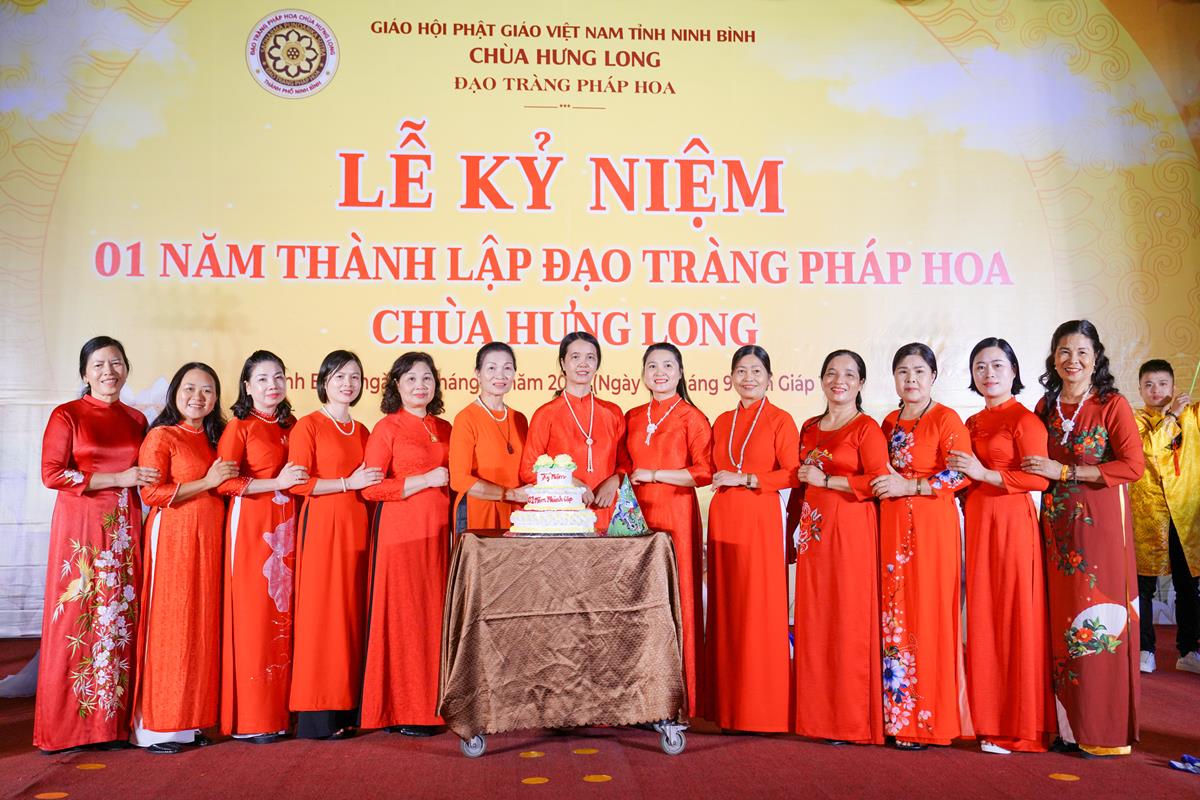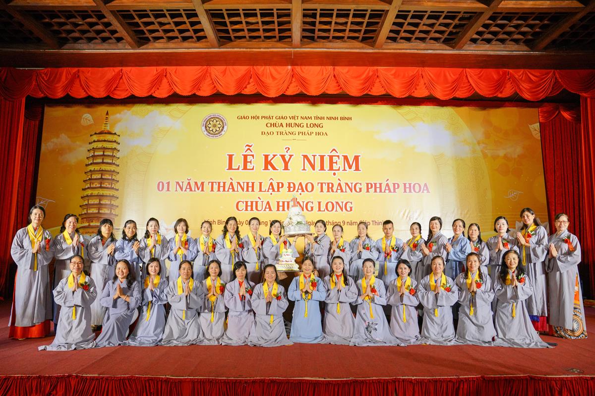 Tháng 10 năm Quý Mão, Đạo tràng đã tham gia tổng tu tại Bái Đính và có hơn 100 Phật tử được dự lễ Quy y, Thọ pháp tại khóa Tổng tu của Đạo tràng Pháp Hoa Miền Bắc. Đến nay, sau 1 năm hoạt động, số lượng đã có hơn 200 Phật tử, Đạo tràng đi vào hoạt động có kỷ cương, nề nếp và ngày càng phát triển. Trong hơn 200 Phật tử, có 125 Phật tử đã được thọ y, còn hơn 100 Phật tử đang nóng lòng được khoác trên mình tấm y cao quý. Mỗi tháng có 2 buổi tu học vào chiều Chủ Nhật và 2 buổi Pháp đàm vào tối thứ năm. Trong năm vừa qua, Đạo tràng tích cực tham gia các hoạt động Phật sự tại chùa Hưng Long, chùa Bái Đính cũng như một số các chùa khác trên địa bàn tỉnh. Đồng thời, Đạo tràng cũng đã xây dựng quỹ Từ thiện để giúp đỡ những hoàn cảnh khó khăn, ủng hộ đồng bào ảnh hưởng bởi cơn bão lũ.