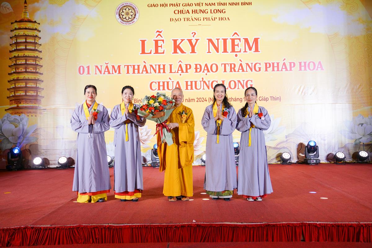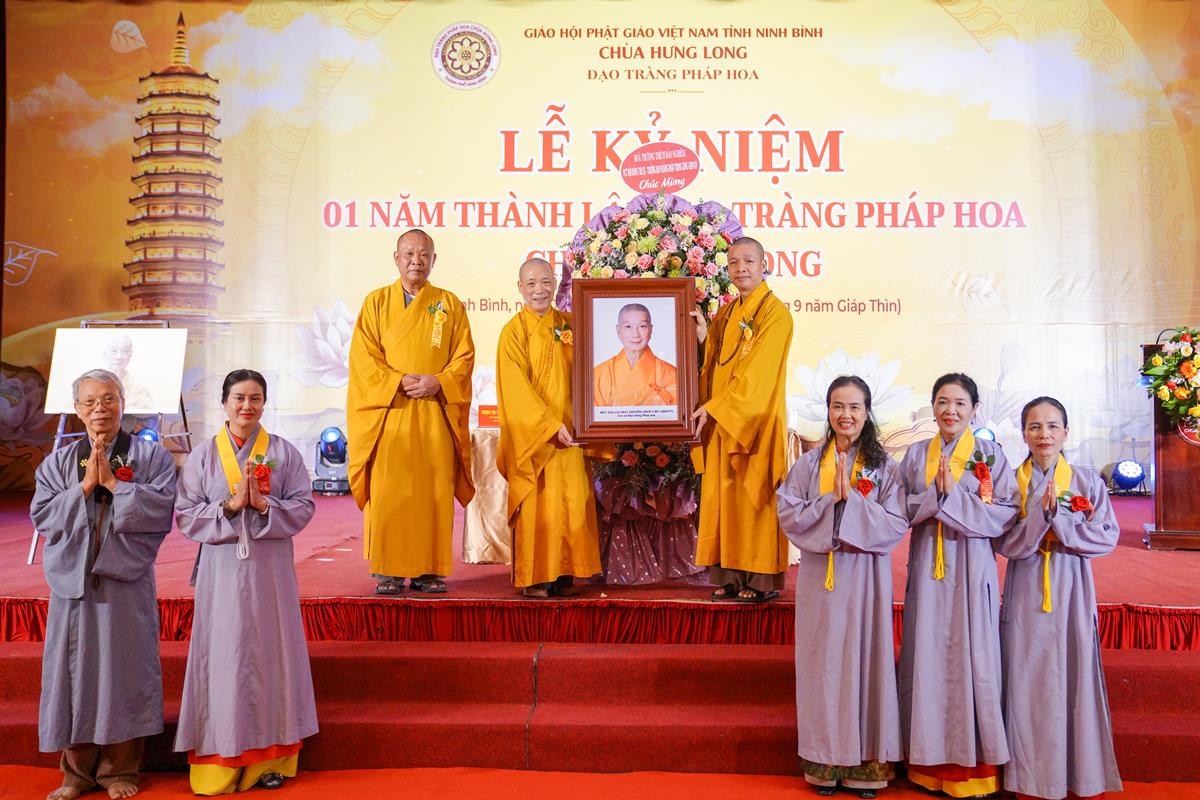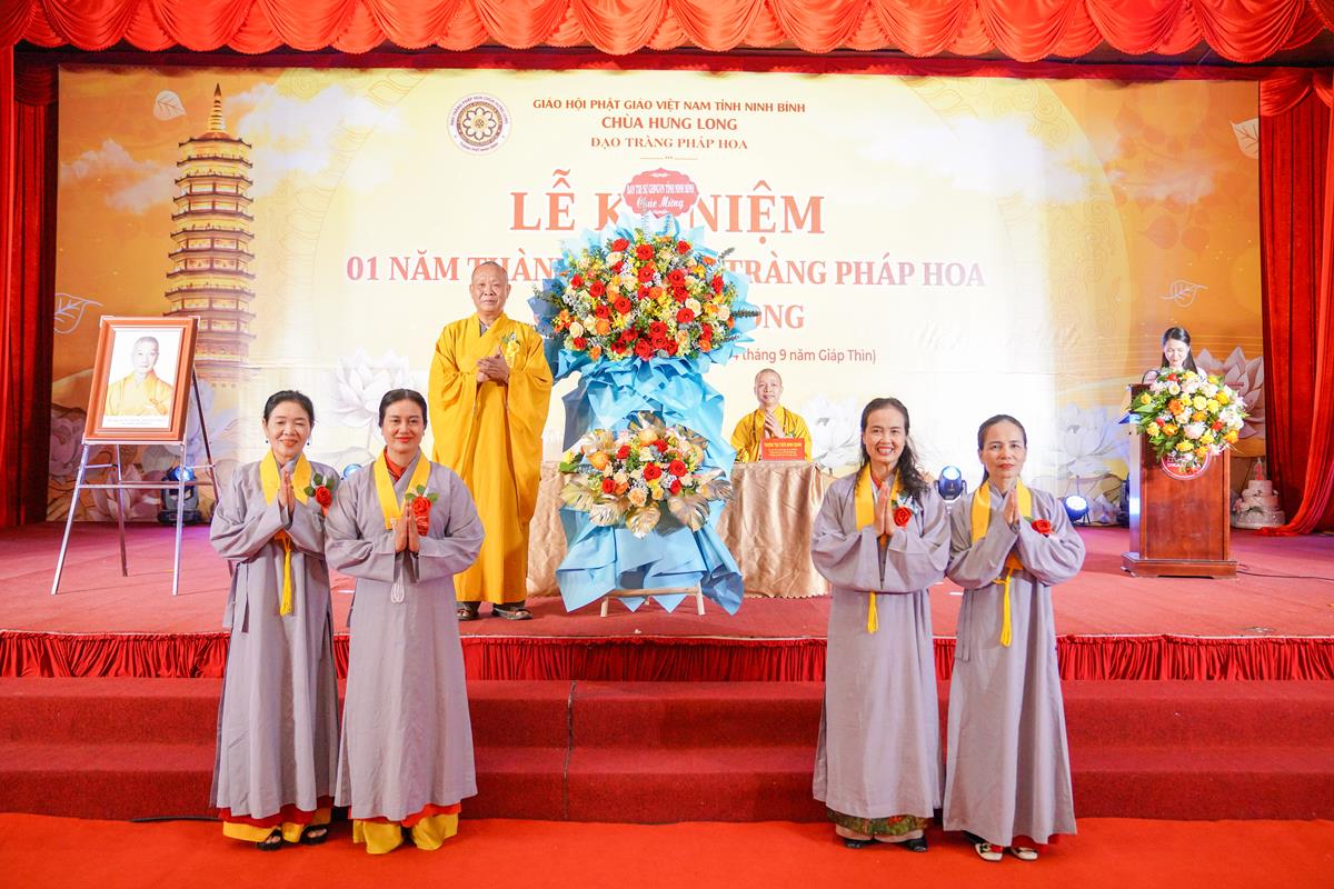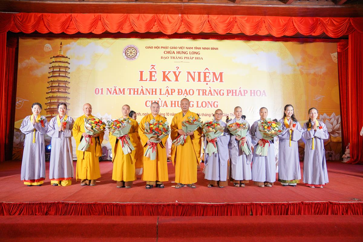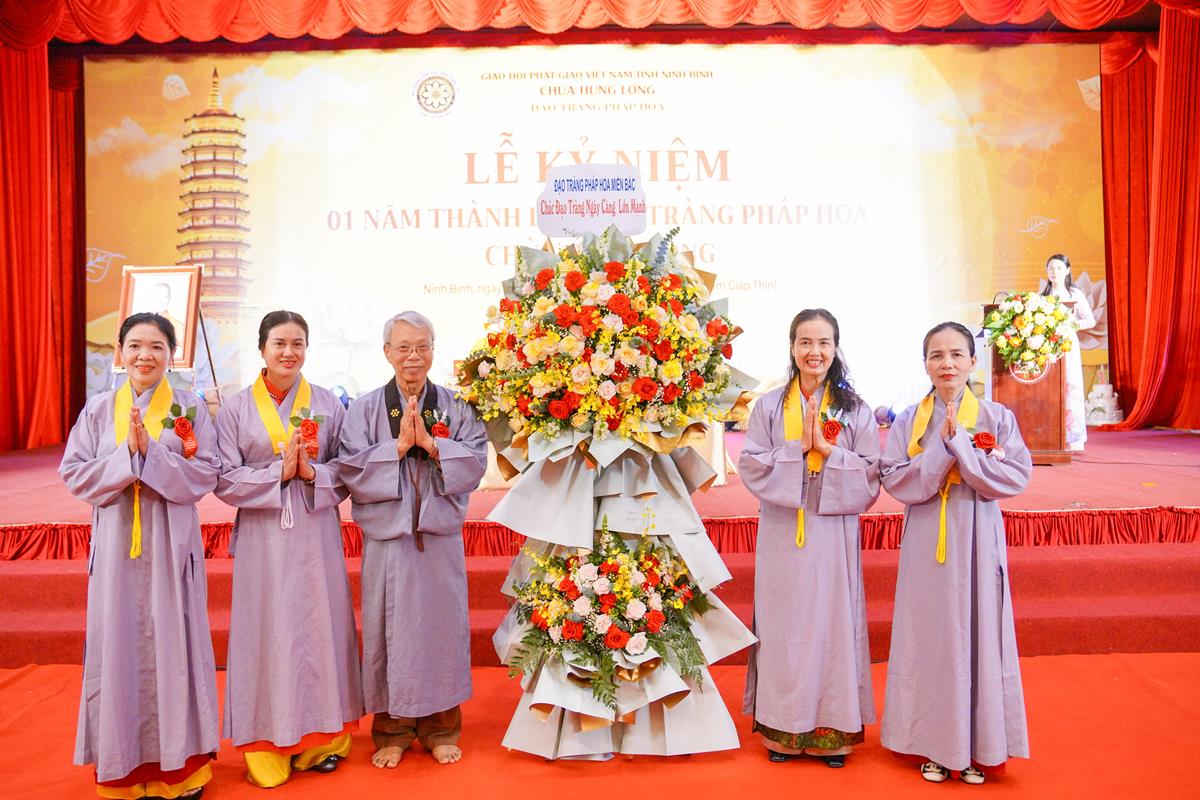 Buổi lễ đặt dưới sự chứng minh của Hòa thượng Thích Bảo Nghiêm – Phó Chủ tịch Hội đồng Trị sự GHPGVN, Trưởng Ban Hoằng pháp Trung ương, Ân sư của Đạo tràng Pháp hoa Miền Bắc; Thượng Tọa Thích Minh Quang – Ủy viên Thư ký HĐTS, Phó Chánh Văn phòng 1 Trung ương, Trưởng BTS GHPGVN tỉnh Ninh Bình, trụ trì Chùa Hưng Long cùng chư tôn đức Tăng Ni và Ban Điều Hành Đạo tràng Pháp Hoa Miền Bắc, Đạo tràng Pháp Hoa chùa Lý Triều Quốc Sư, chùa Bằng, Mọc Quan Nhân, Đình Quán, Cát Linh, Bà Đá và Phật tử thập phương đồng về tham dự.