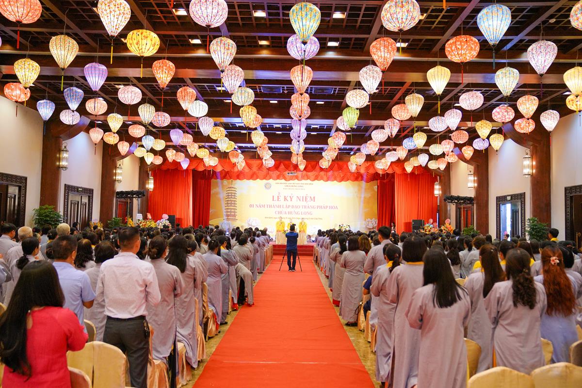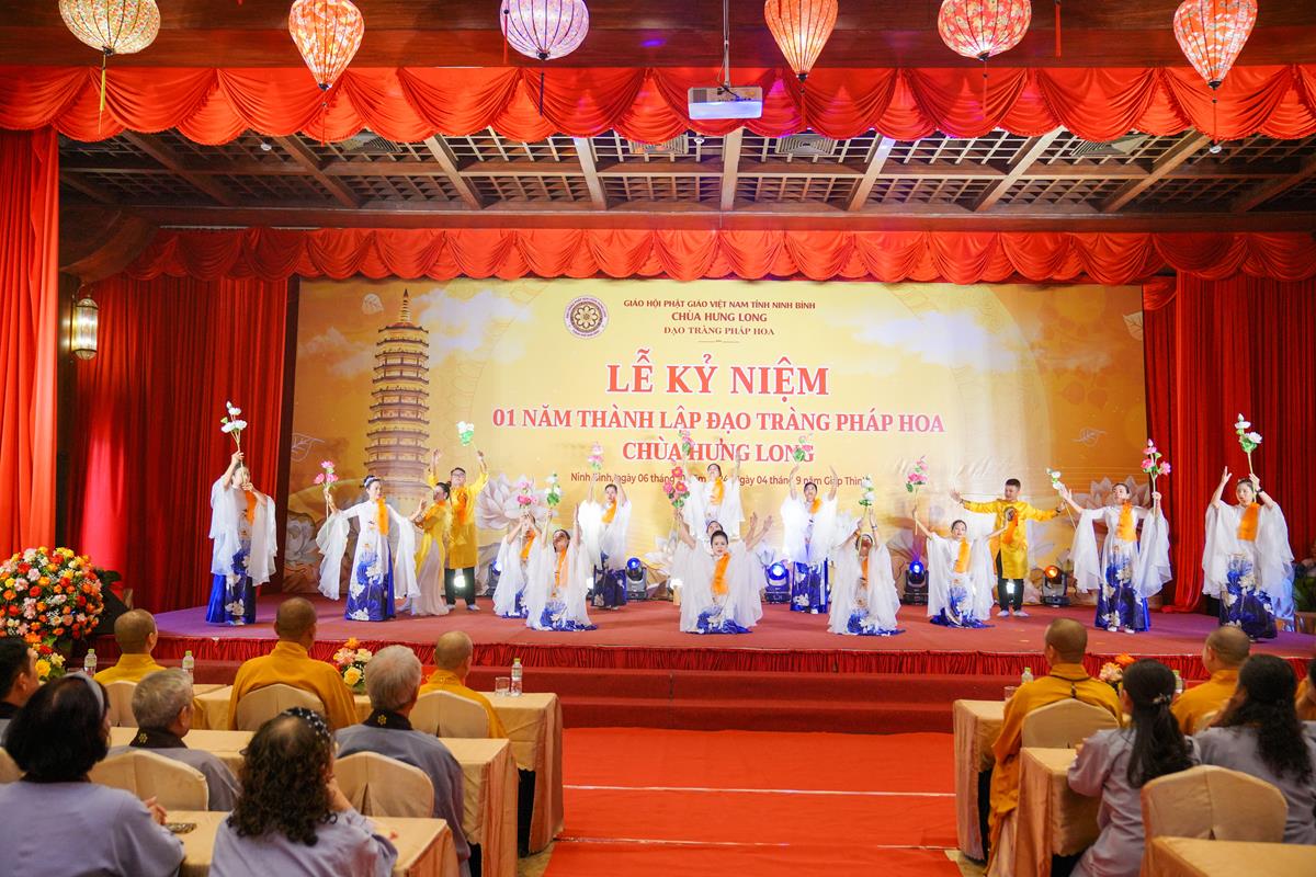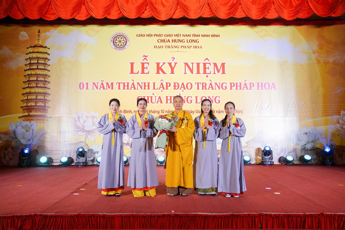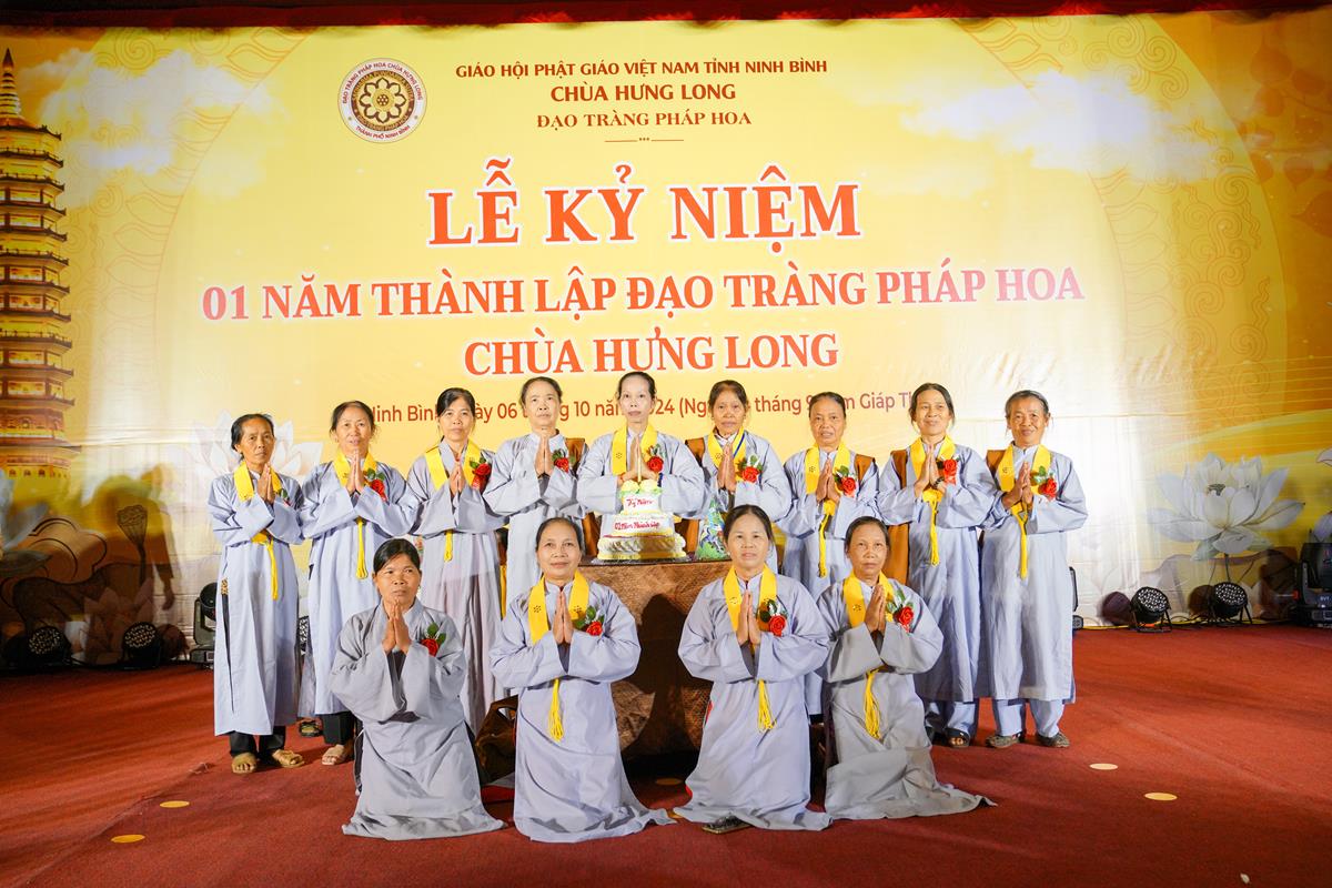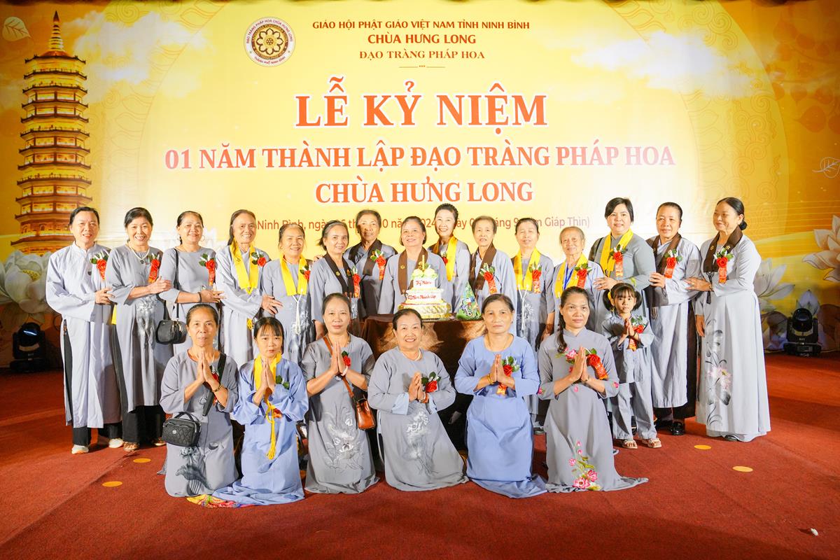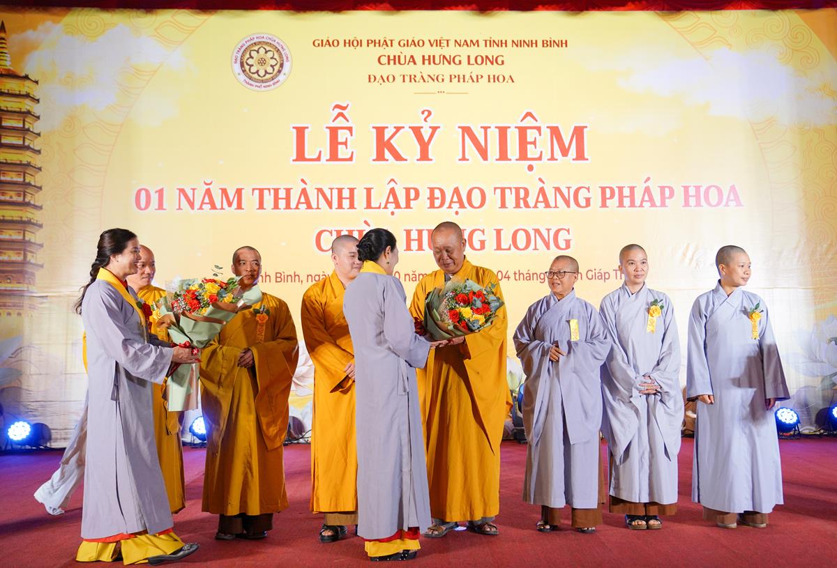 Buổi lễ đặt dưới sự chứng minh của Hòa thượng Thích Bảo Nghiêm – Phó Chủ tịch Hội đồng Trị sự GHPGVN, Trưởng Ban Hoằng pháp Trung ương, Ân sư của Đạo tràng Pháp hoa Miền Bắc; Thượng Tọa Thích Minh Quang – Ủy viên Thư ký HĐTS, Phó Chánh Văn phòng 1 Trung ương, Trưởng BTS GHPGVN tỉnh Ninh Bình, trụ trì Chùa Hưng Long cùng chư tôn đức Tăng Ni và Ban Điều Hành Đạo tràng Pháp Hoa Miền Bắc, Đạo tràng Pháp Hoa chùa Lý Triều Quốc Sư, chùa Bằng, Mọc Quan Nhân, Đình Quán, Cát Linh, Bà Đá và Phật tử thập phương đồng về tham dự.