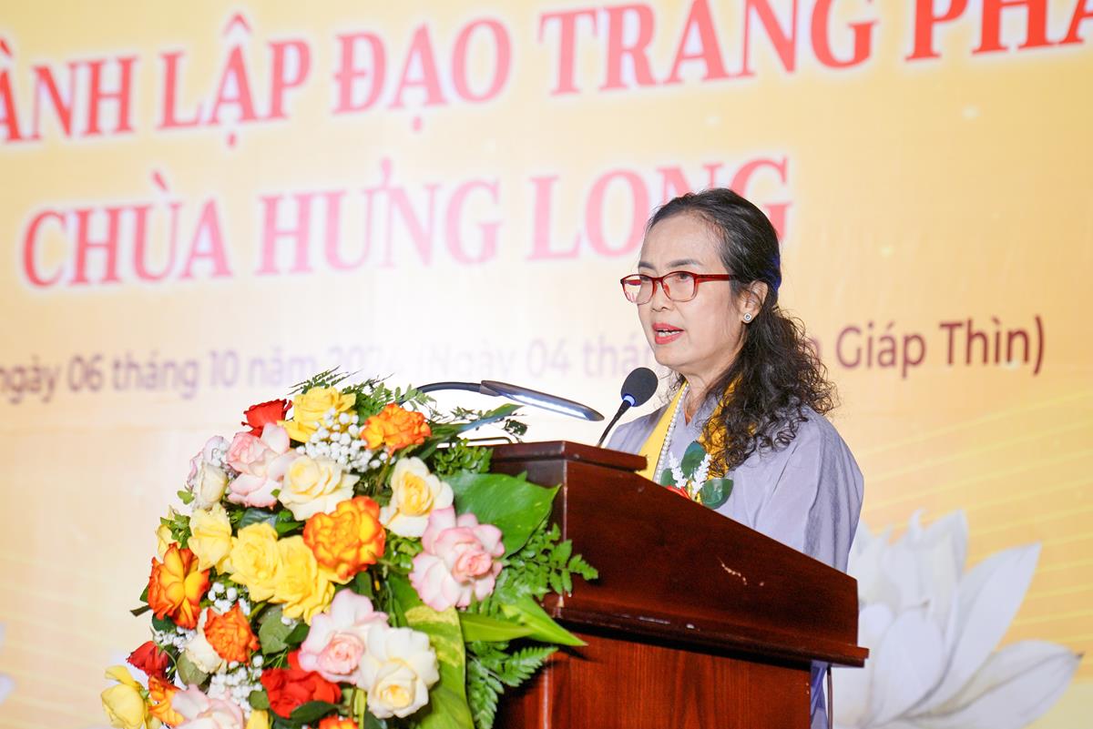 Báo cáo quá trình tu học của Đạo tràng Pháp hoa Hưng Long, Phật tử Hoa Hương Yến cho biết trong 1 năm qua Đạo tràng đã kiện toàn bộ máy hoạt động gồm 5 Ban đó là: Ban thường trực; Ban Nghi lễ; Ban Kiểm chúng; Ban Hậu cần, Ban truyền thông và từ thiện. Đạo tràng chia thành 4 tổ: tổ Hoa Ưu Đàm, tổ Hoa Sala, tổ Hoa Sen và tổ Hoa Bồ Đề.