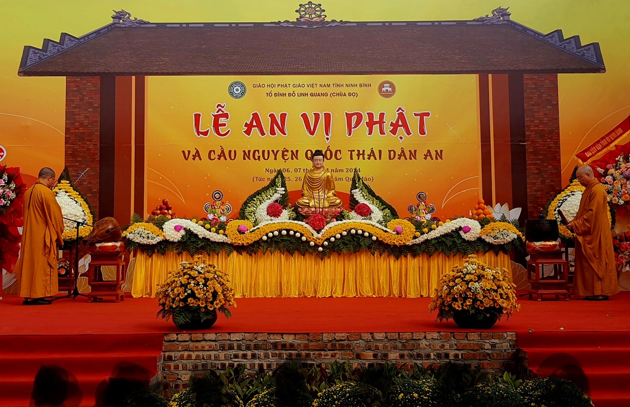 Trước đó( đêm 25/11 Quý Mão) Chư tôn đức Tăng ni Sơn môn Tổ đình Đỗ Linh Quang (chùa Đọ)và BTS GHPGVN tỉnh Ninh Bình đã đăng đàn , tụng kinh , lễ Phật cúng Tổ và tổ chức trang nghiêm nghi lễ truyền đăng cầu nguyện Quốc thái dân an.