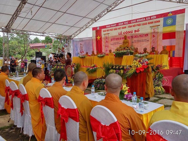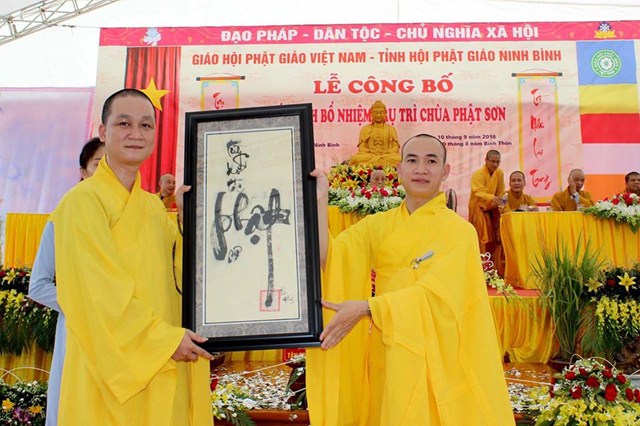 Tại buổi lễ, Sư Cô Thích Diệu Minh – Phó văn phòng GHPGVN tỉnh Ninh Bình đã lên công bố quyết định Bổ nhiệm trụ trì chùa Phật Sơn cho Đại Đức tân trụ trì Thích Quảng Hiệp. Sau khi Sư Cô Thích Diệu Minh công bố quyết định bổ nhiệm trụ trì chùa Phật Sơn, TT. Thích Thanh Kim – Phó trưởng Ban thường trực BTS GHPGVN tỉnh Ninh Bình đã trao quyết định bổ nhiệm trụ trì cho Đại Đức Thích Quảng Hiệp trong niềm hoan hỷ của chư tôn đức Tăng Ni và bà con Phật tử gần xa.