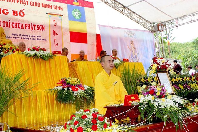 Sau nghi thức niệm Phật cầu gia hộ, chào đạo kỳ, quốc kỳ, TT. Thích Đức Lợi – Phó thư ký Ban hoằng pháp TƯ GHPGVN, trưởng Ban trị sự GHPGVN huyện Nho Quan, trưởng BTC đại lễ đã lên tuyên đọc Diễn văn khai mạc lễ công bố quyết định bổ nhiệm trụ trì chùa Phật Sơn, huyện Nho Quan, tỉnh Ninh Bình.