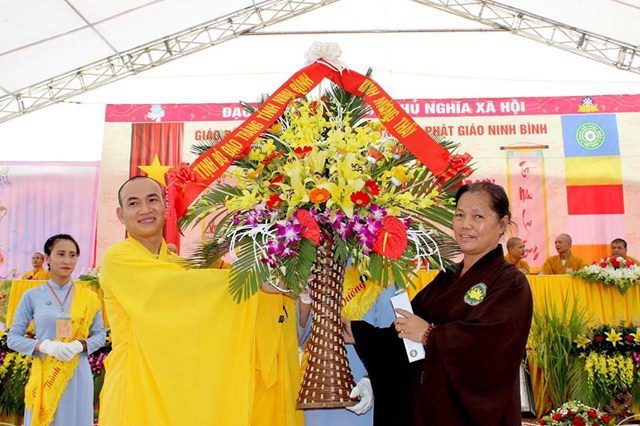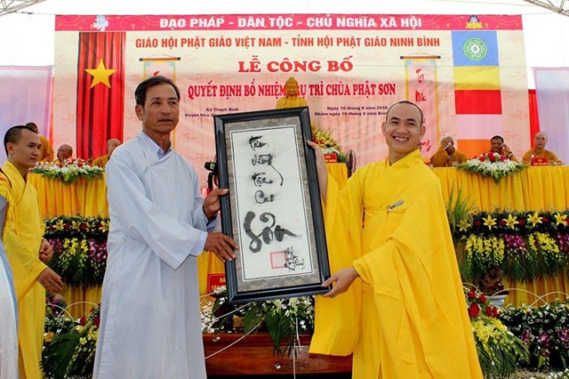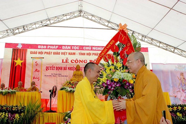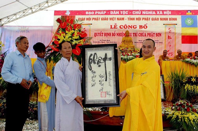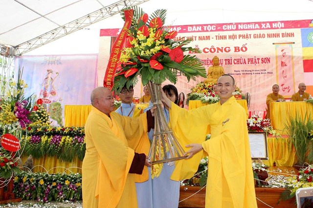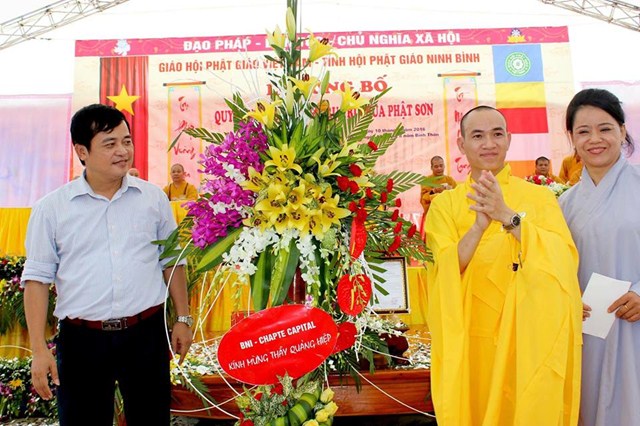 Nhân dịp này, Đại Đức tân trụ trì đã đón nhận những lẵng hoa tươi thắm chúc mừng từ phía Ban trị sự GHPGVN tỉnh Ninh Bình, Chư tôn đức Tăng Ni trong và ngoài tỉnh Ninh Bình, cùng các cấp chính quyền, các sở, ban ngành của tỉnh và của huyện Nho Quan.