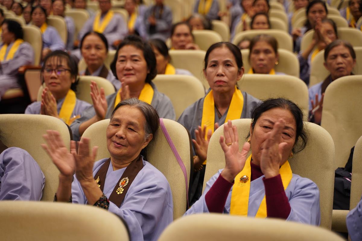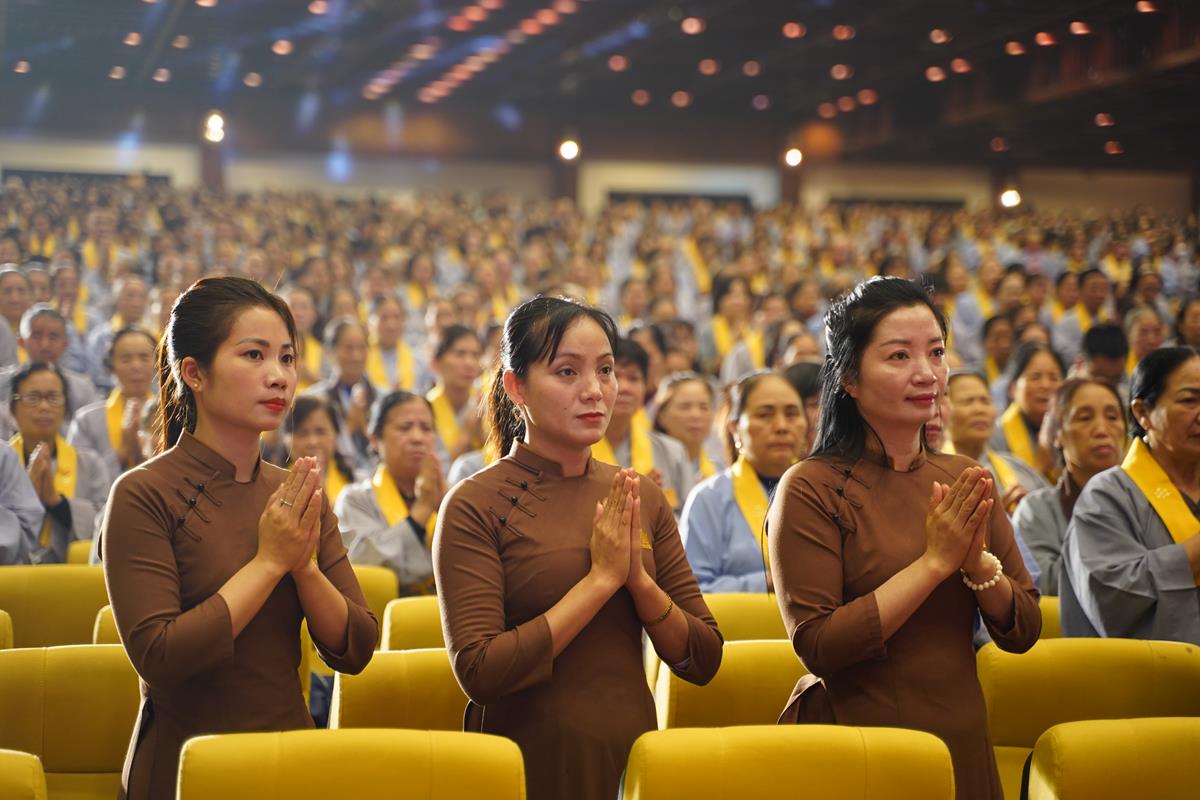 Buổi sáng, các Phật tử đăng ký thọ y đã trang nghiêm vân tập tại nơi Điện Giáo Chủ, tĩnh tâm an lành đón nhận giờ phút Hòa thượng Ân sư Thích Bảo Nghiêm truyền trao tấm y vàng tượng trưng cho sự giác ngộ, giải thoát. Kể từ thời khắc ấy, những thiện nam thiện nữ ấy chính thức trở thành hành giả Pháp Hoa, nguyện đời đời thọ trì – quảng tuyên lưu bố Pháp Hoa kinh, noi bước Hòa thượng Tôn sư cùng chư vị Giáo thọ sư, mang giáo lý Phật đà phổ cập nhân sinh, làm lợi lạc cho cộng đồng tha nhân.