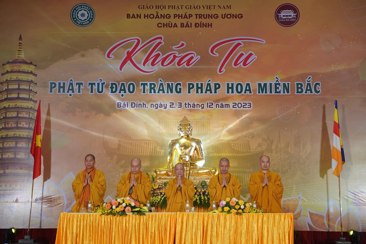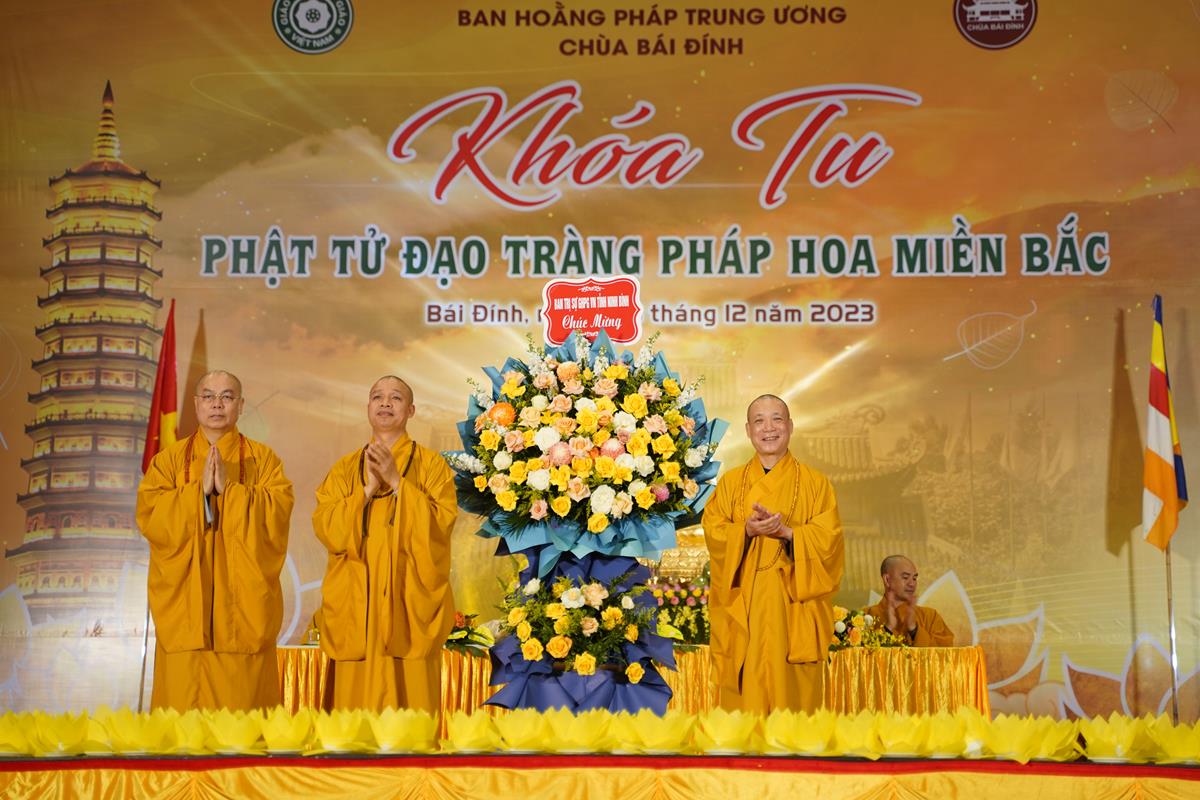 Chứng minh buổi lễ là Hòa thượng Thích Bảo Nghiêm – Phó chủ tịch HĐTS, Trưởng Ban Hoằng pháp TW, Trưởng Ban tổ chức khóa tu; Thượng tọa Thích Minh Quang – Ủy viên thư ký HĐTS, Phó chánh văn phòng TW GHPGVN, Trưởng BTS GHPGVN tỉnh Ninh Bình, đồng Trưởng Ban tổ chức; Thượng tọa Thích Chúc Tiếp – Ủy viên HĐTS, Phó trưởng Ban Hoằng pháp TW GHPGVN; Thượng tọa Thích Đức Lợi – Phó trưởng Ban Hoằng pháp TW GHPGVN; Đại đức Thích Trí Thuần – Phó thư ký, Chánh văn phòng Ban Hoằng pháp TW GHPGVN; Đại đức Thích Quảng Nghĩa – Phó văn phòng Ban Hoằng pháp TW GHPGVN cùng chư Tôn đức Tăng Ni thường trực Ban Hoằng pháp TW, thành viên lớp đào tạo Giảng sư khu vực phía Bắc.