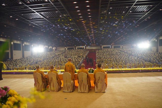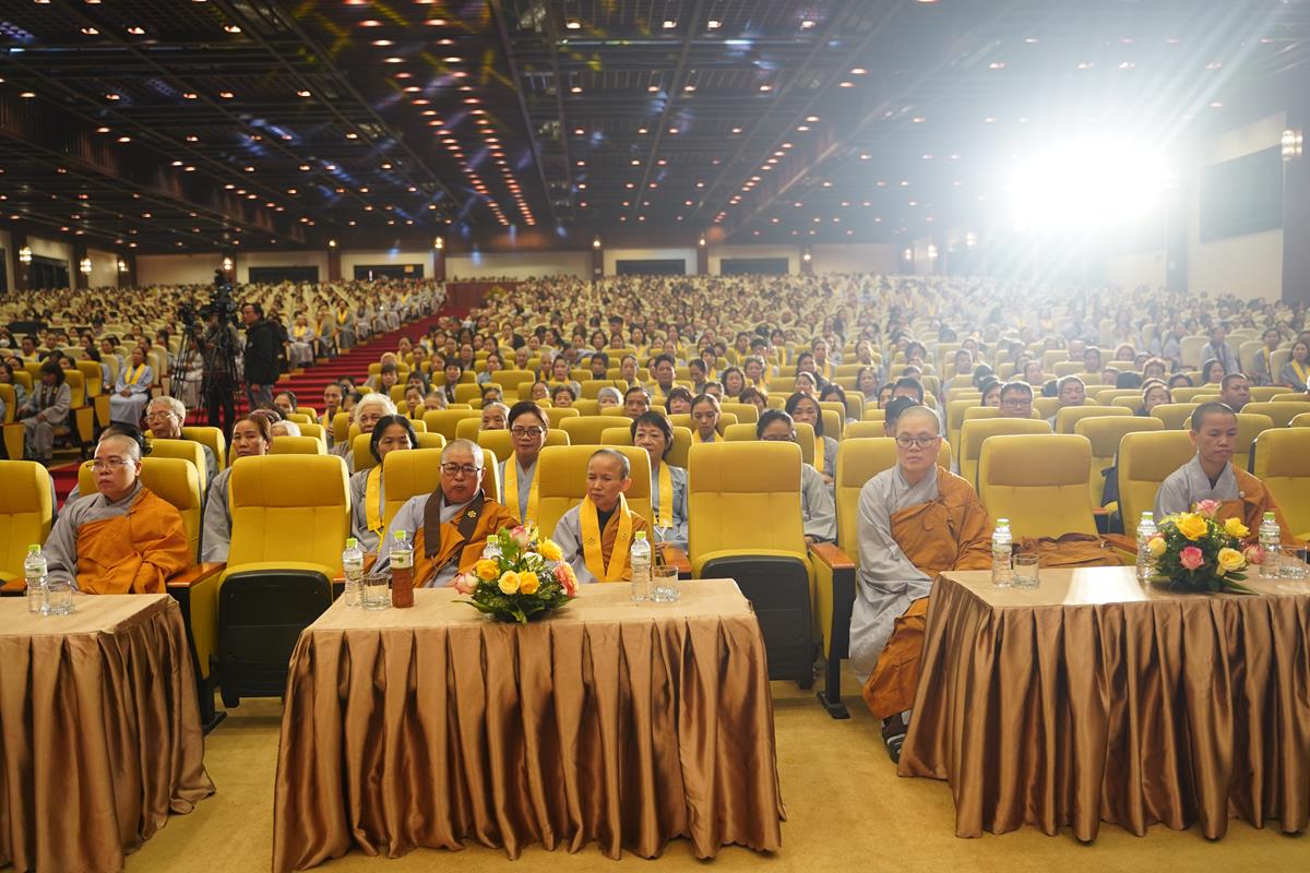 Còn tại nơi Hội trường là thời khóa tụng Bổn Môn vô cùng trang nghiêm của toàn thể hội chúng dưới sự hướng dẫn của Ban nghi lễ.