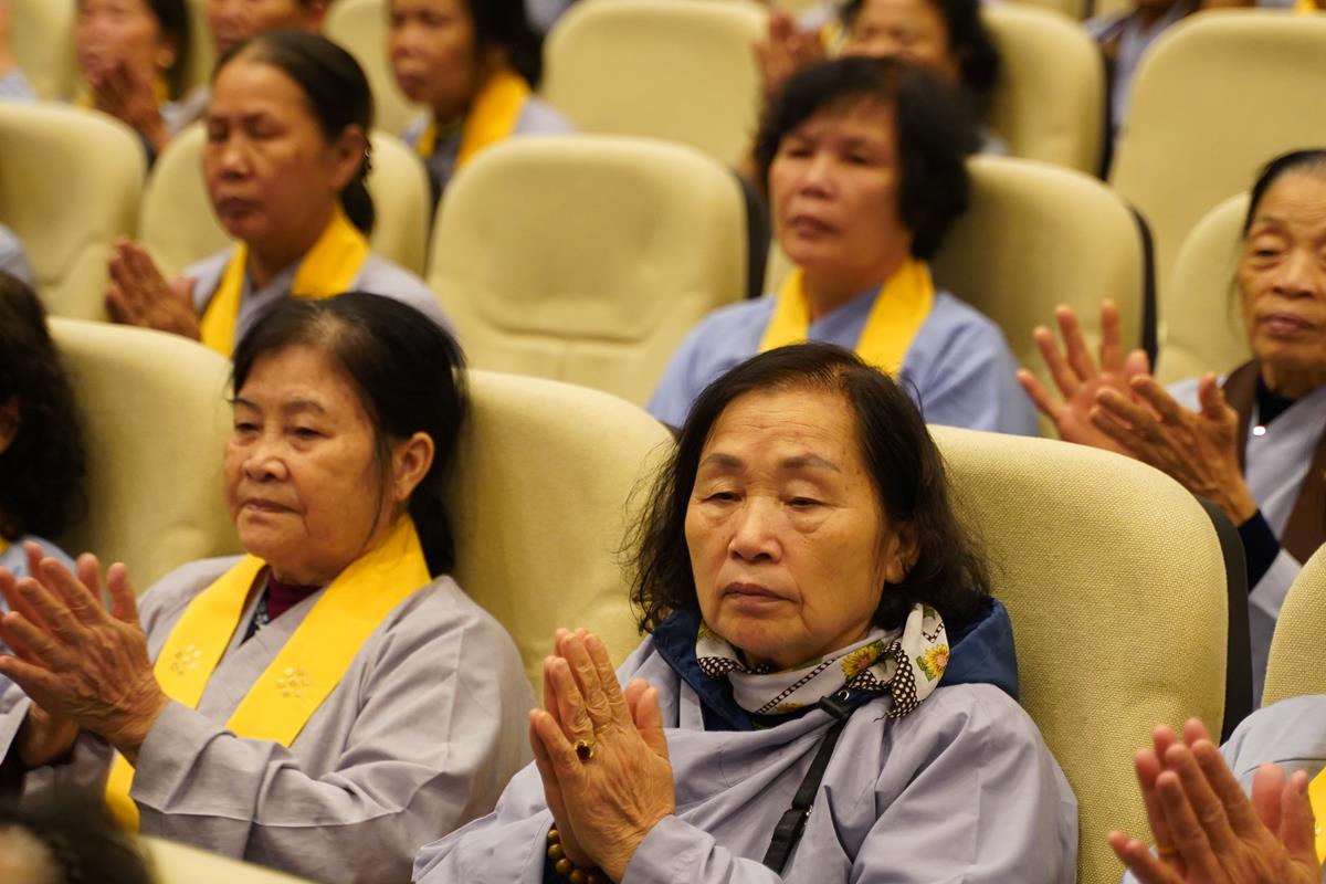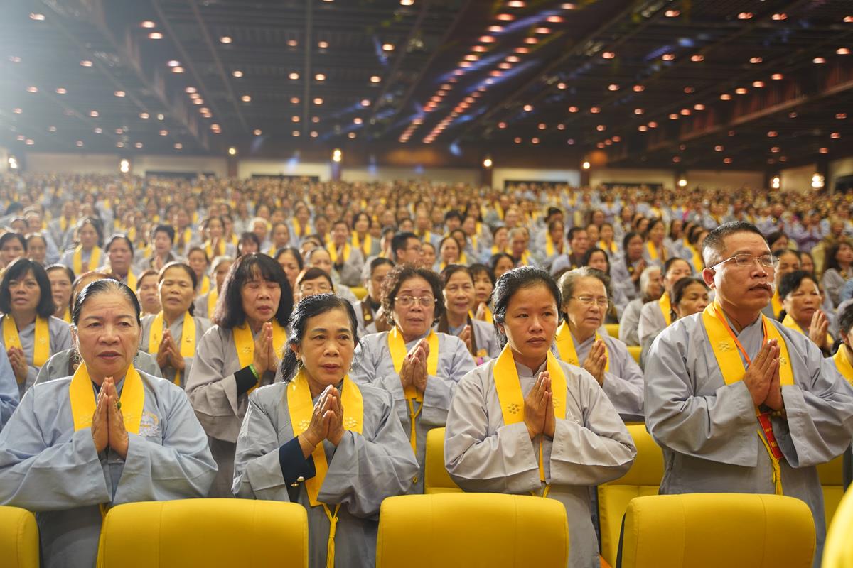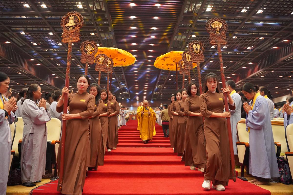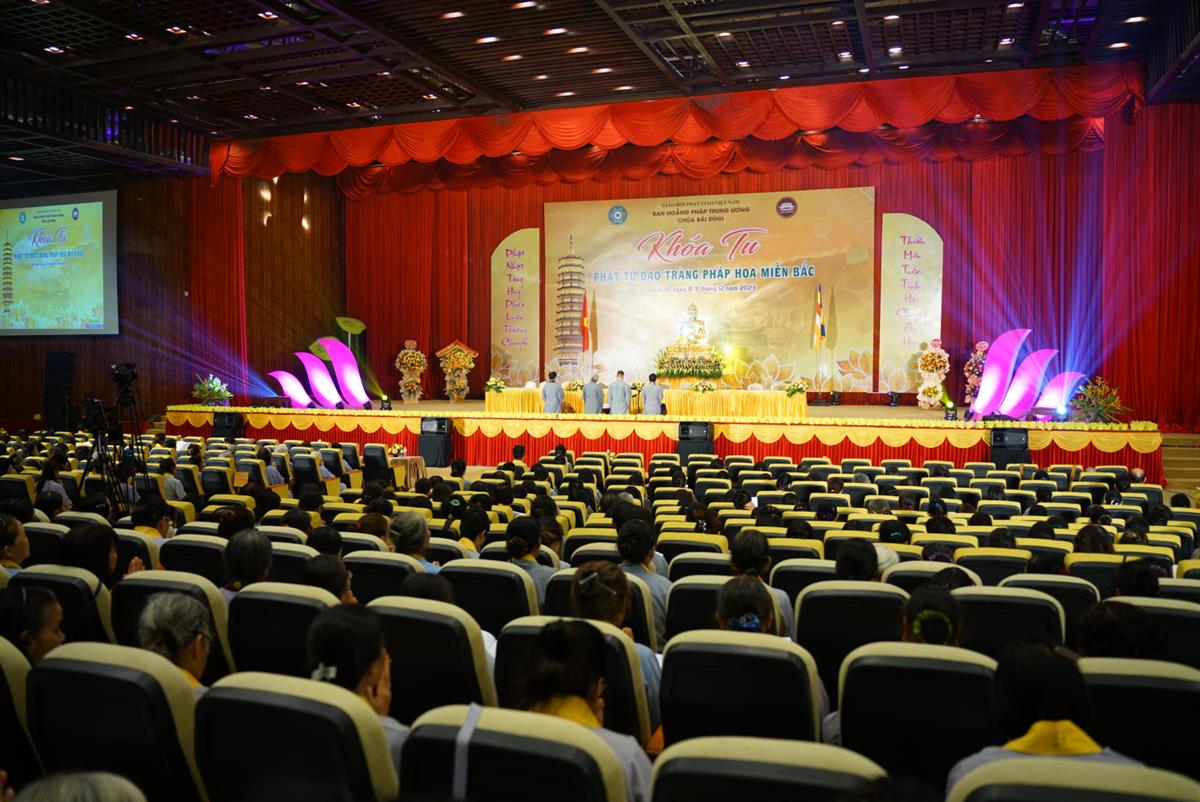 Đầu giờ chiều, ban nghi lễ đã cung rước chư Tôn đức quang lâm Hội trường để chính thức bắt đầu chương trình bế mạc khóa tu Phật tử Đạo tràng Pháp Hoa miền Bắc.