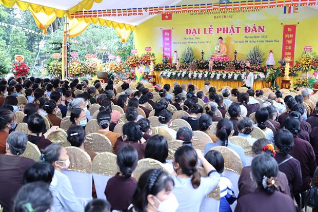 Trong không khí trang nghiêm, thanh tịnh, Đại đức Thích Thanh Cương, Trưởng Ban Trị sự Huyện đã tuyên đọc Thông điệp của Đức quyền Pháp Chủ GHPGVN Trưởng lão Hòa thượng thích Trí Quảng, gửi Tăng Ni, cư sĩ Phật tử Việt Nam nhân dịp Phật Đản PL 2566 – DL 2022.