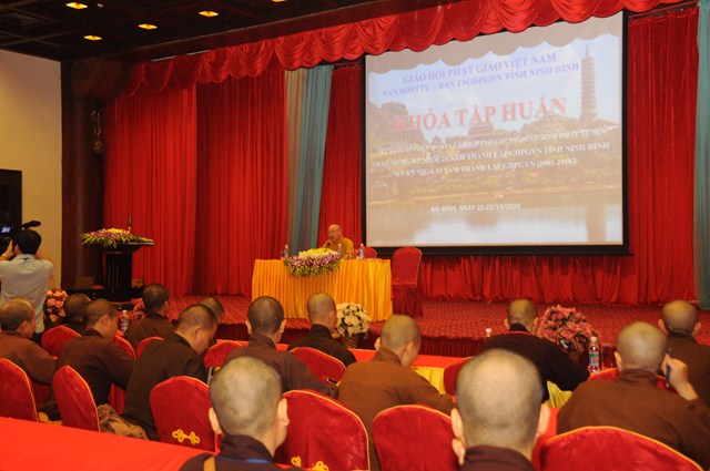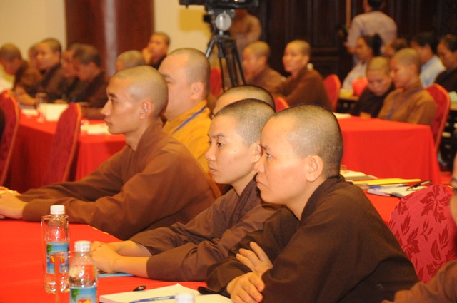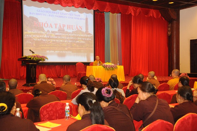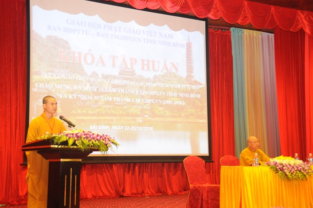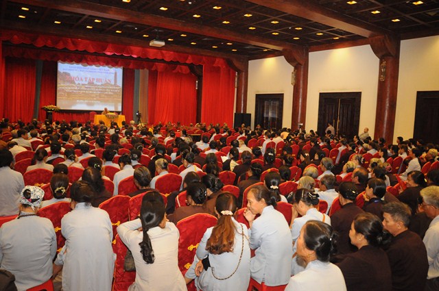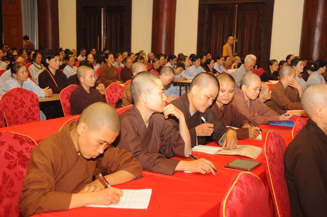 Sau hơn 1 tiếng đồng hồ, các Phật tử tham dự khóa tập huấn Kỹ năng tổ chức quản lý điều hành các mô hình sinh hoạt tu học đã được nghe thượng tọa Thích Thanh Giác chia sẻ những kiến thức cơ bản nhất thuộc 1 trong 5 nội dung mà Ban hoằng Pháp TƯ GHPGVN đang hướng tới.
