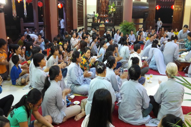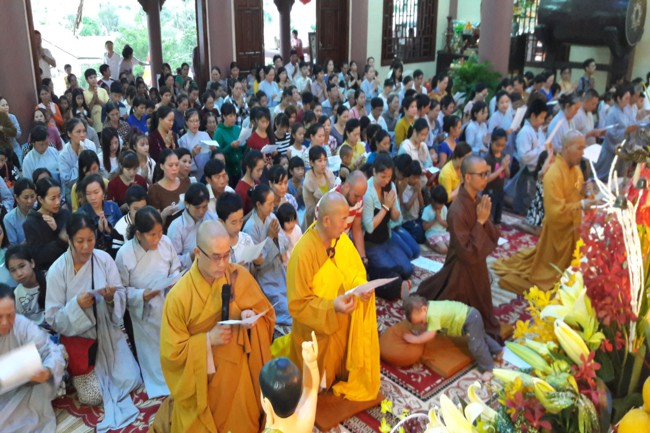 Quang lâm buổi lễ có Đại Đức Thích Nguyên Kính – Trụ trì chùa Quan Âm cùng chư tôn đức Tăng trong chốn trụ xứ và đông đảo quý Phật tử đang tu học tại chùa Quan Âm và quý Phật tử tại một số chùa trên địa bàn tỉnh Ninh Thuận.
